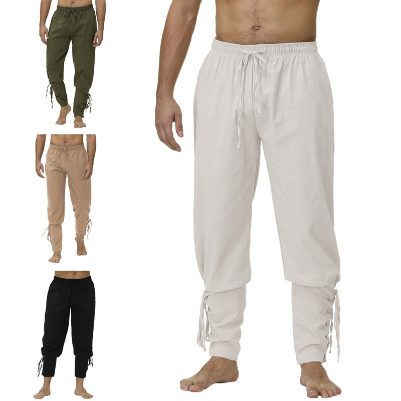 2025 средневековые исполнительские брюки с ремешками для ног Ренессанс стиль сцены костюмы брюки однотонные мужские брюки