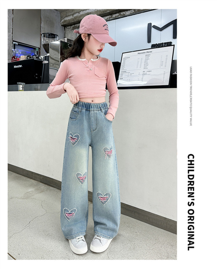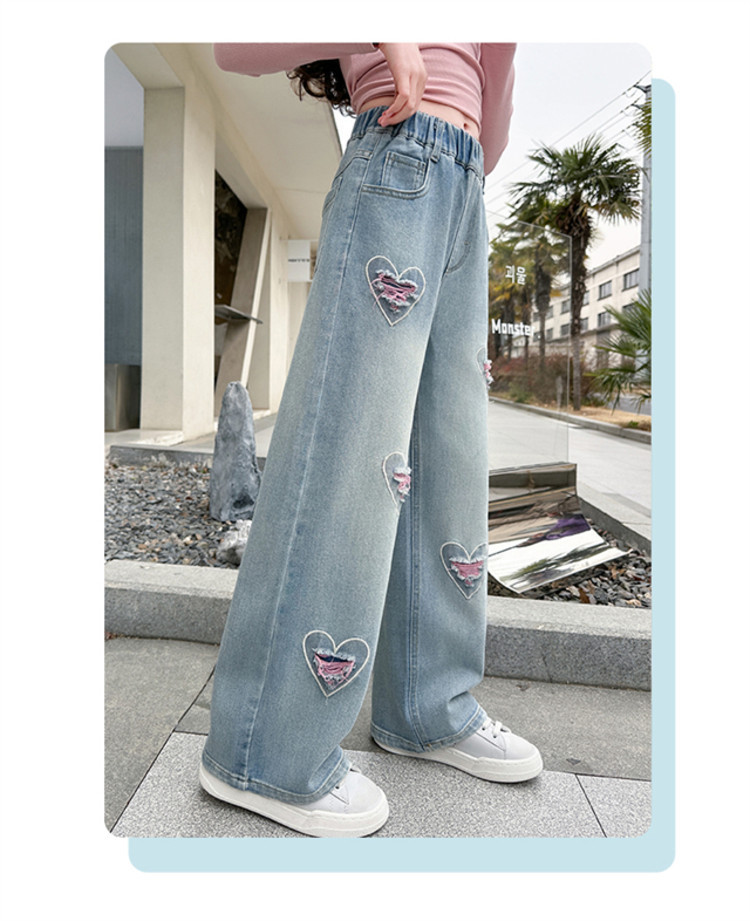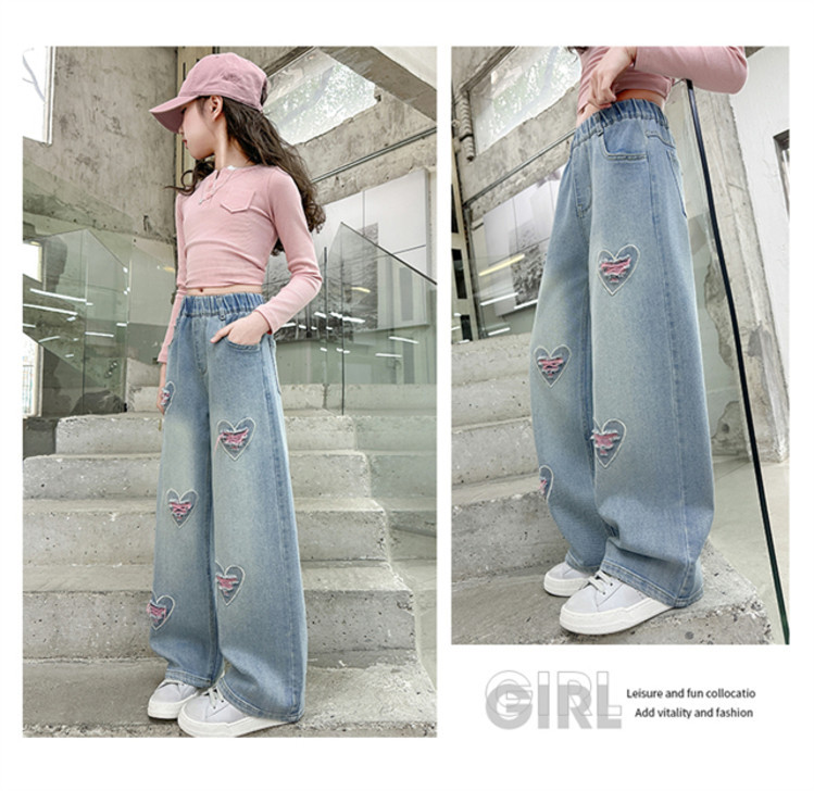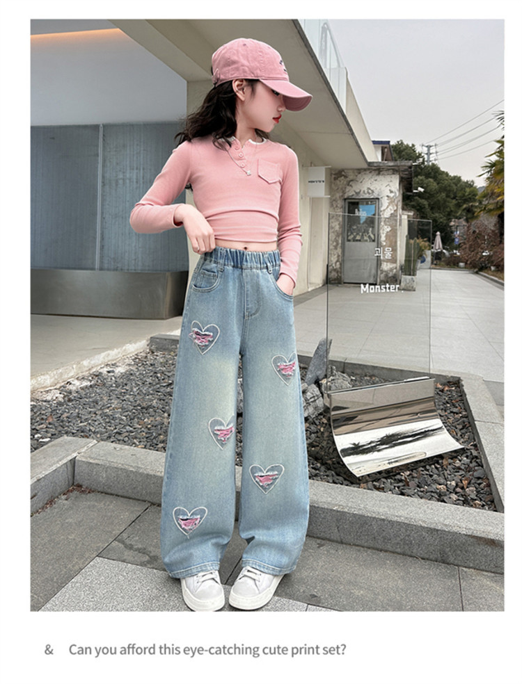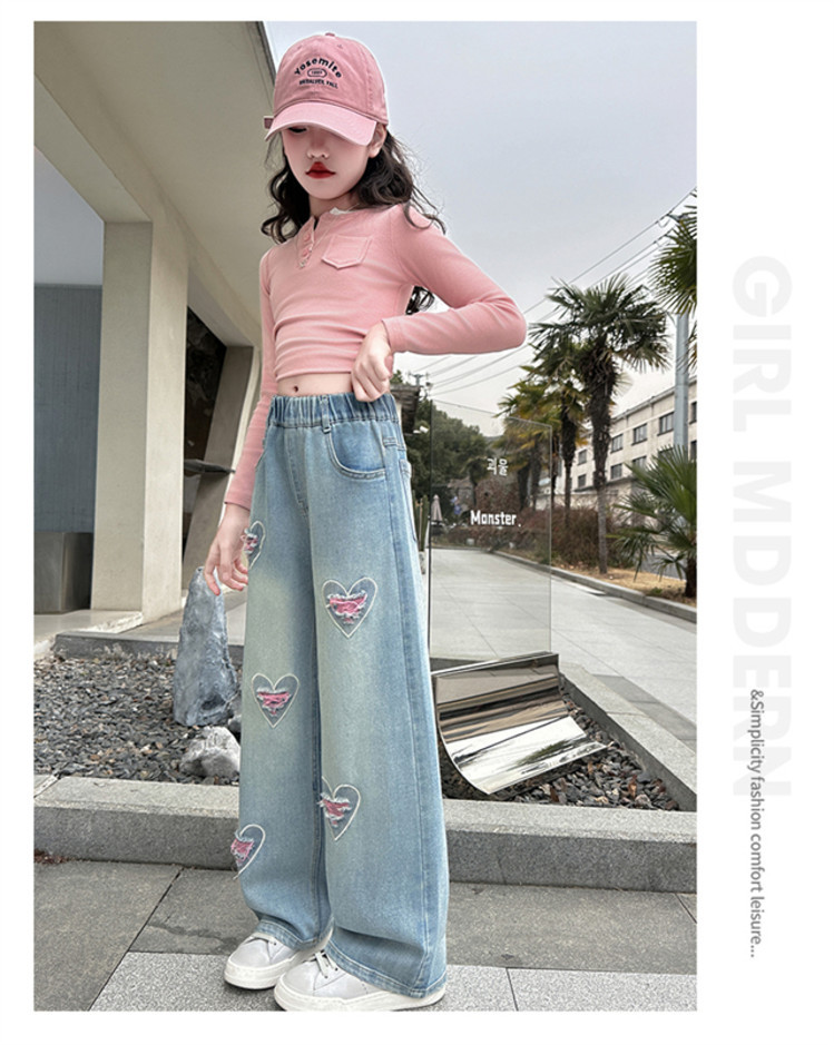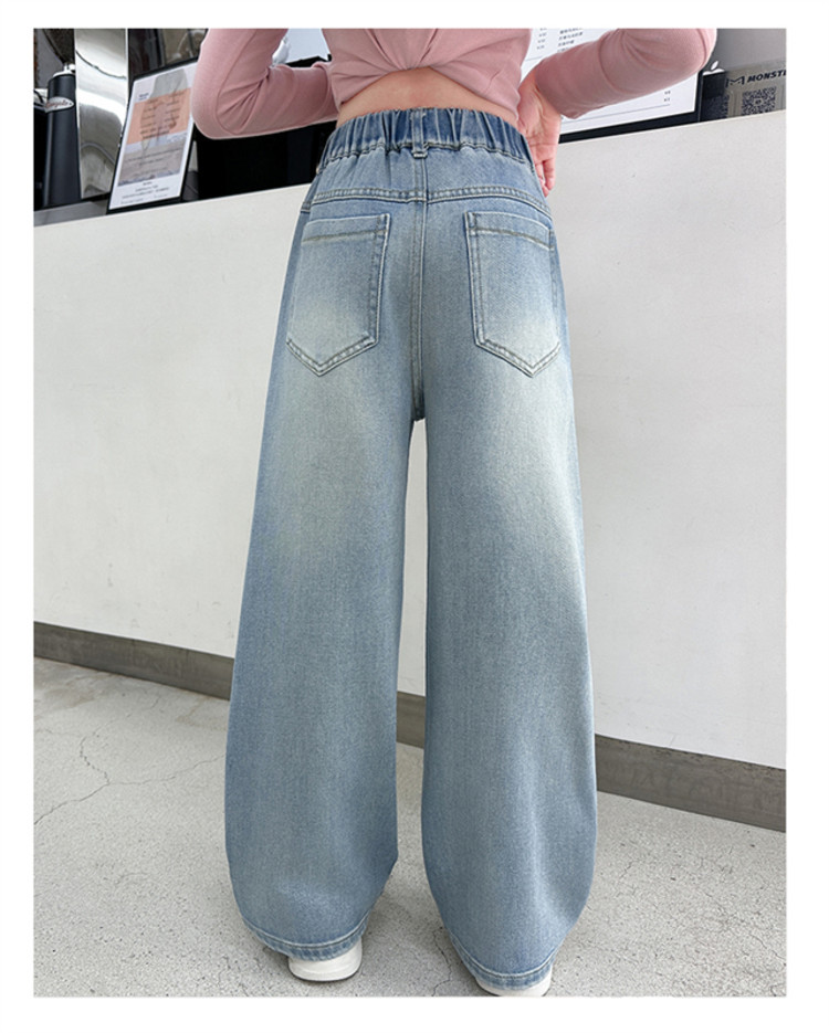 Брюки для девочек Весна и осень 2025 новый весенний костюм дети прямые широкие брюки девочки большие джинсы ученица средней школы