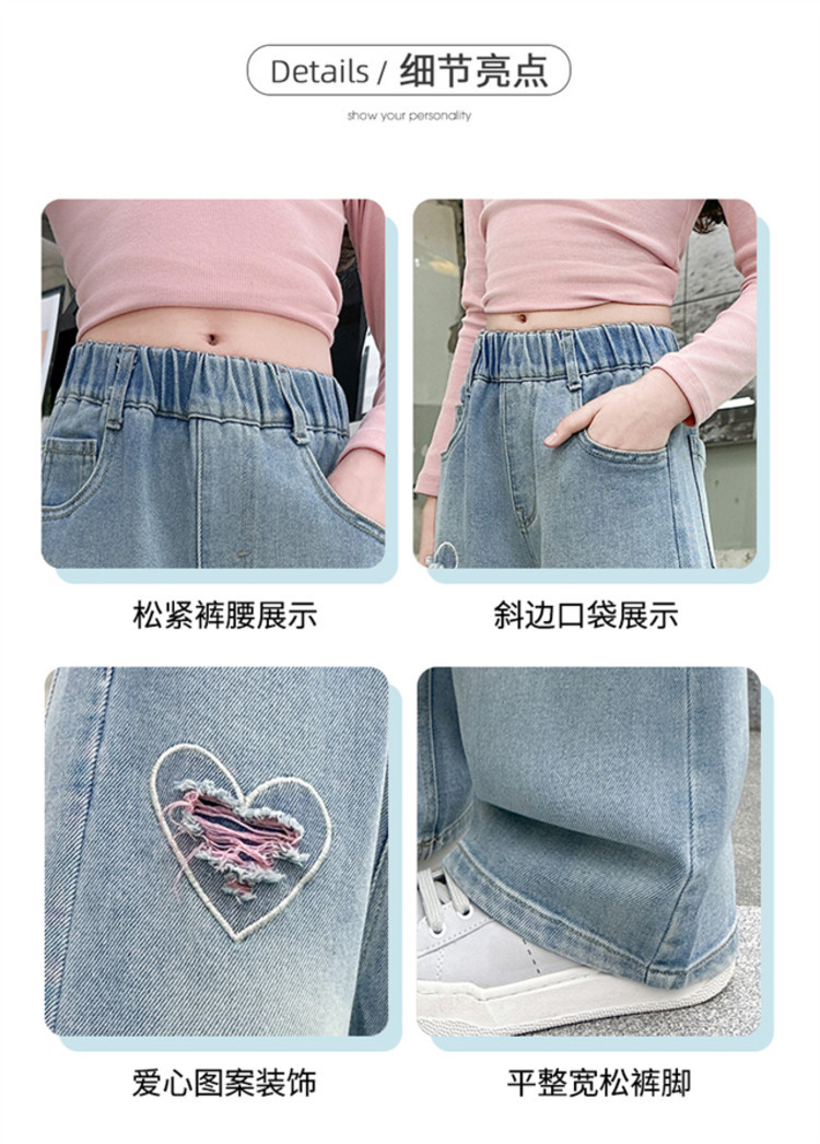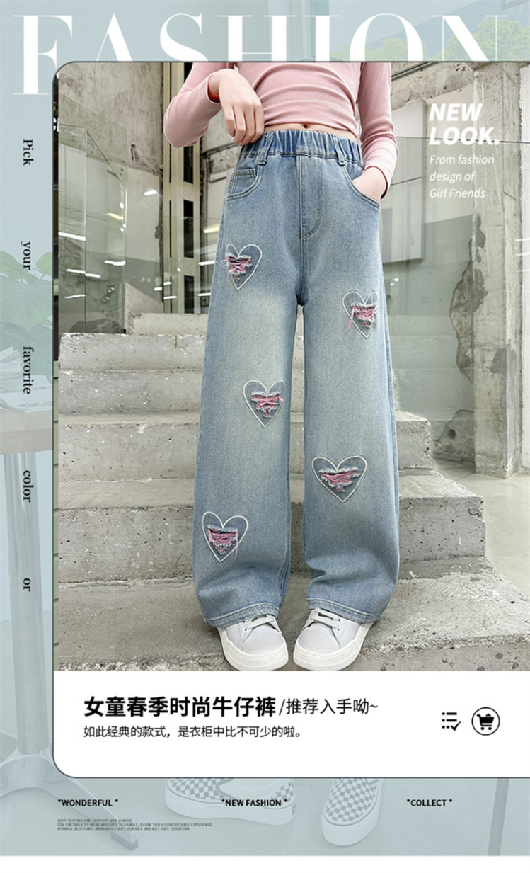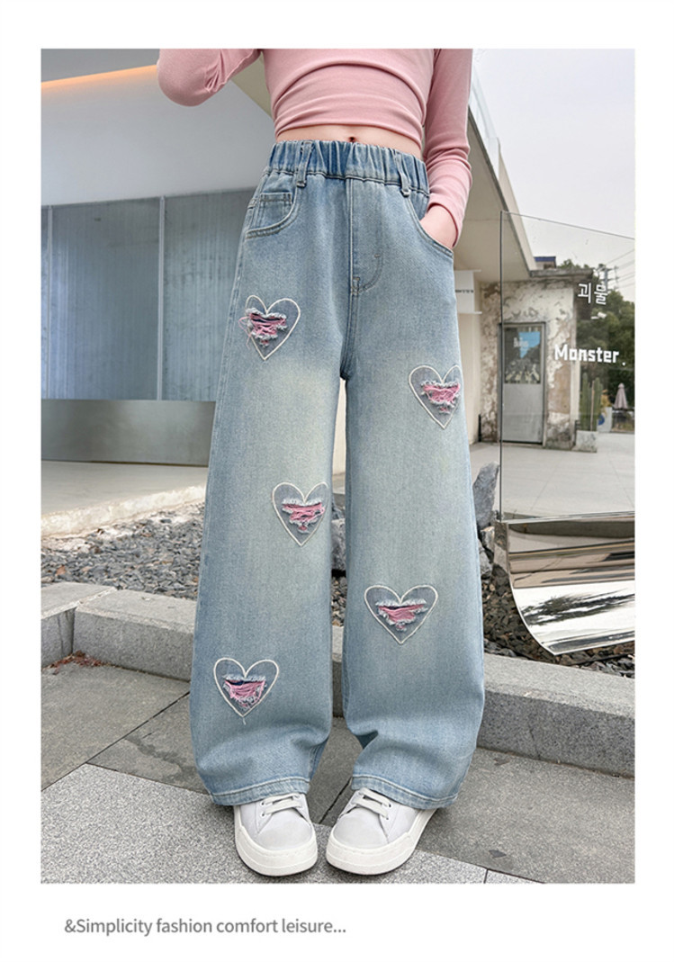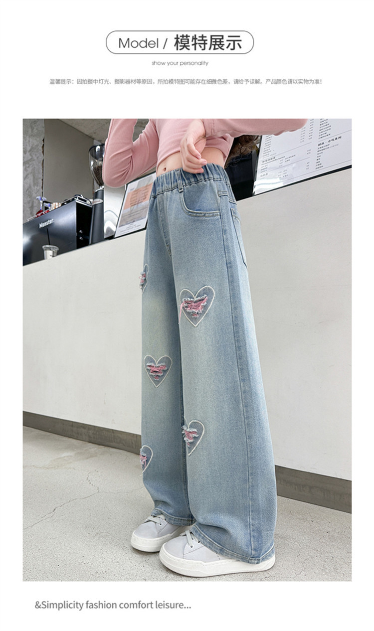 Брюки для девочек Весна и осень 2025 новый весенний костюм дети прямые широкие брюки девочки большие джинсы ученица средней школы
