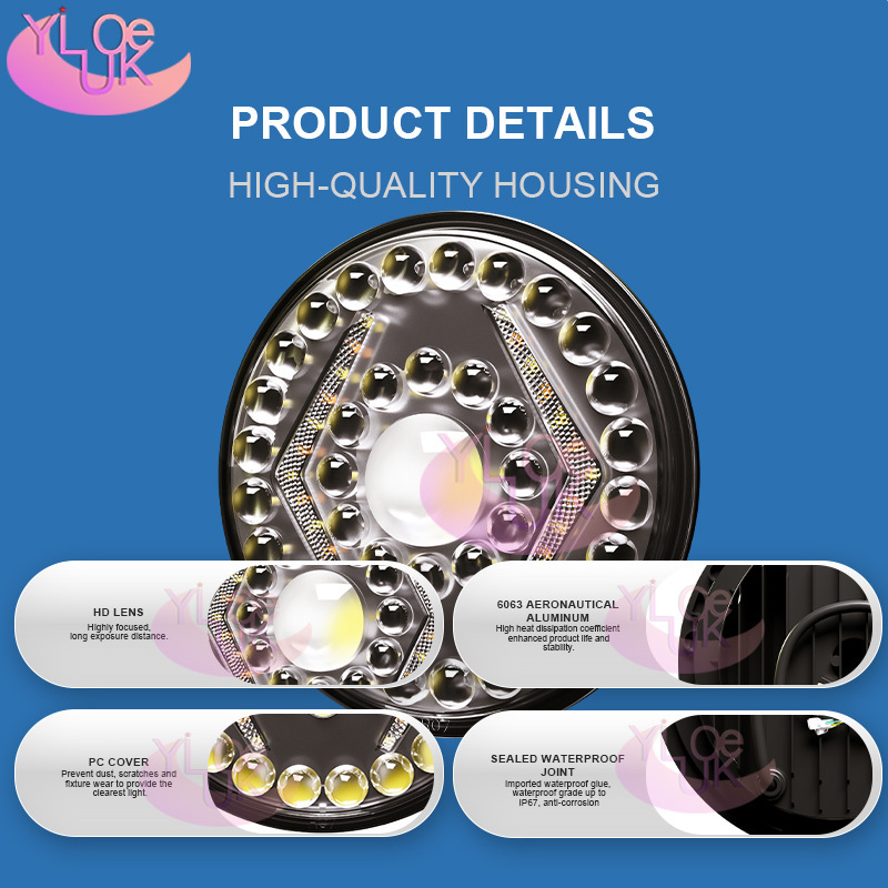 YLK Wrangler 7inch Светодиодные фары дальнего и ближнего света, встроенные внедорожные мотоциклы, модифицированные ангельские глазки с дневными ходовыми огнями