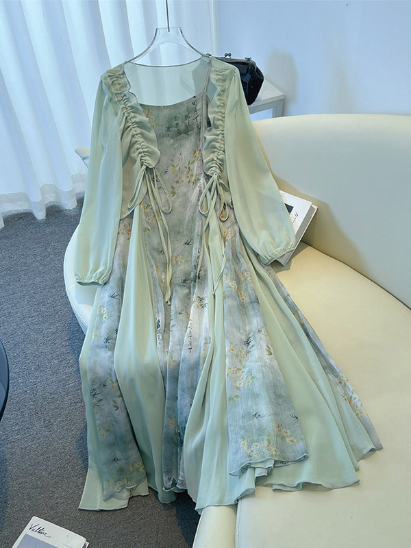 130-350 фунтов большой размер женский толстый мм национальный ветер холодный подтяжка платье кардиган внешний костюм Летний новый стиль
