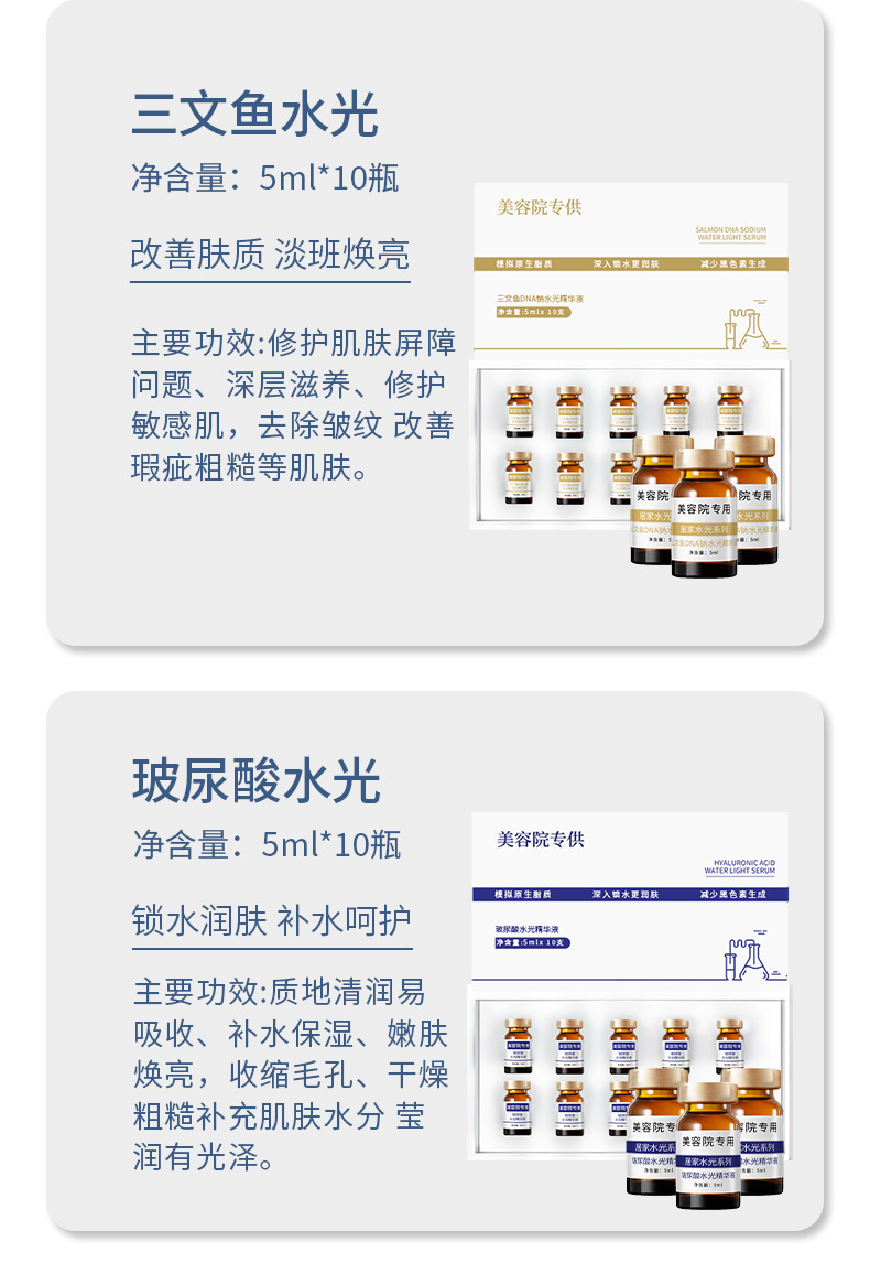 Салон красоты: водная эссенция с лососем, антивозрастная кинетическая энергия, коллагеновая эссенция, мезодерма, микронидлинг, световая эссенция с водным светом.