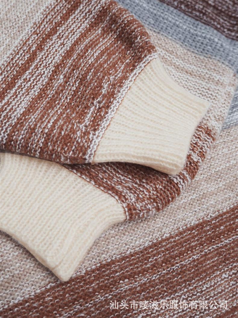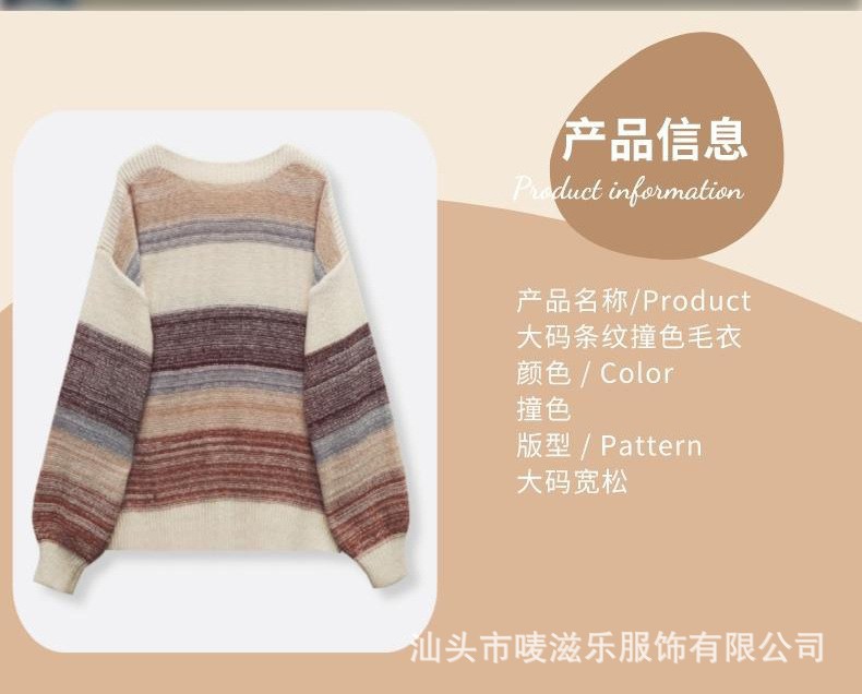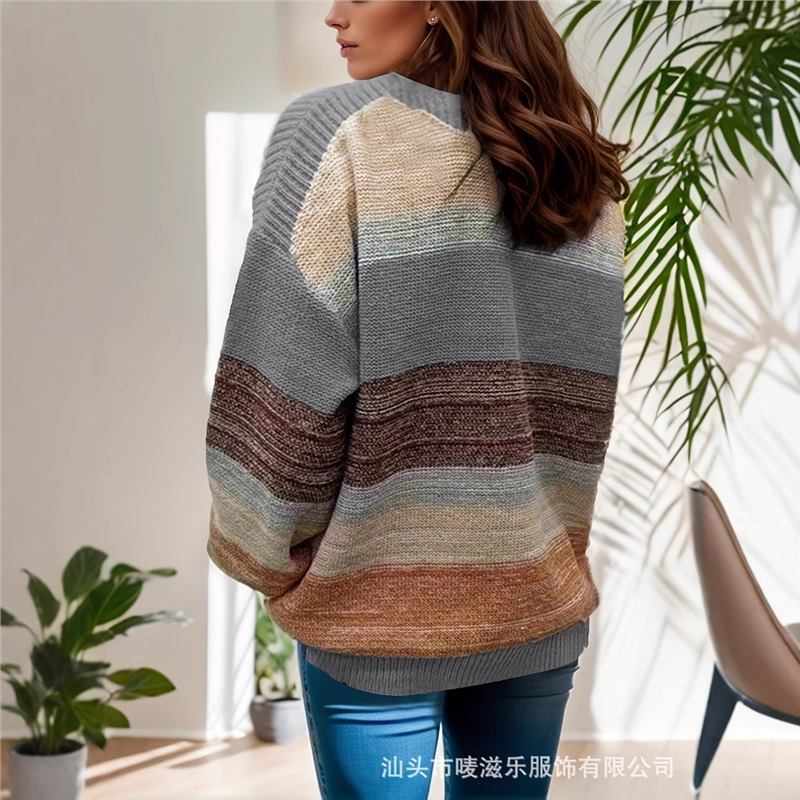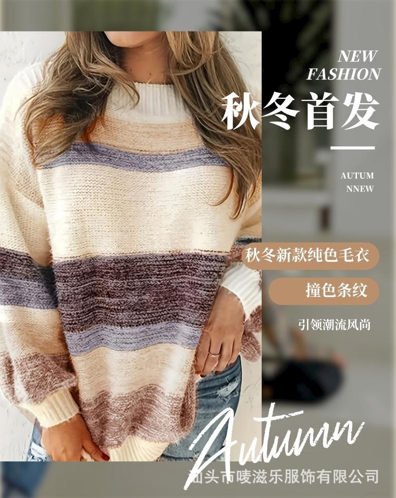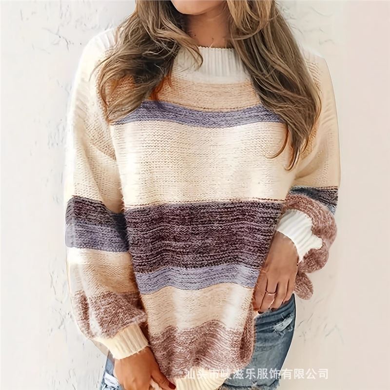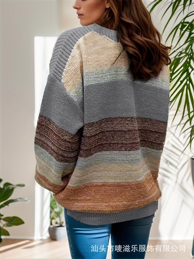 В наличии: осенне-зимняя коллекция 2025 года, трансграничная торговля, женская мода больших размеров, полосатый свитер с цветными блоками, элегантный и омолаживающий трикотаж.
