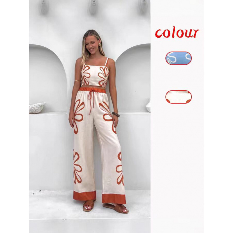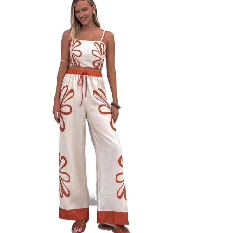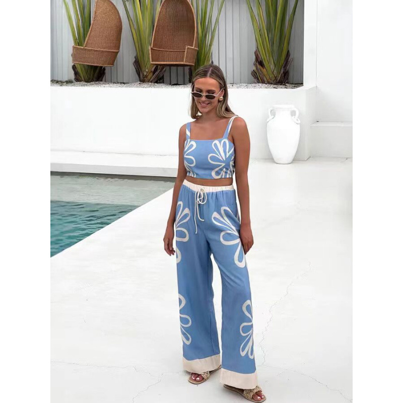 Летний комплект: короткий жилет с принтом и широкие брюки с эластичной талией, комплект с принтом на майке и широкими брюками
