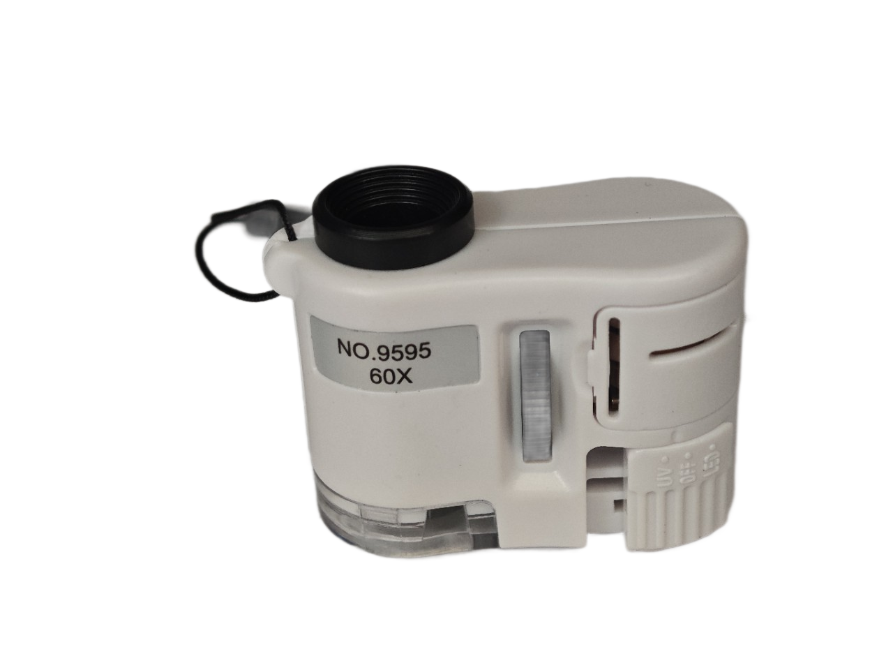 Микроскоп 9595 белый, 60x, миниатюрный, для оценки ювелирных изделий, со светодиодной подсветкой, УФ-подсветкой для проверки валюты, портативный светодиодный фонарь, поляризованный свет для проверки валюты