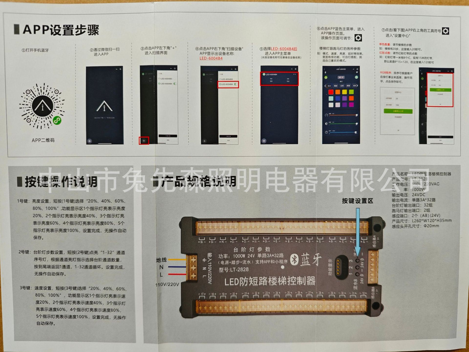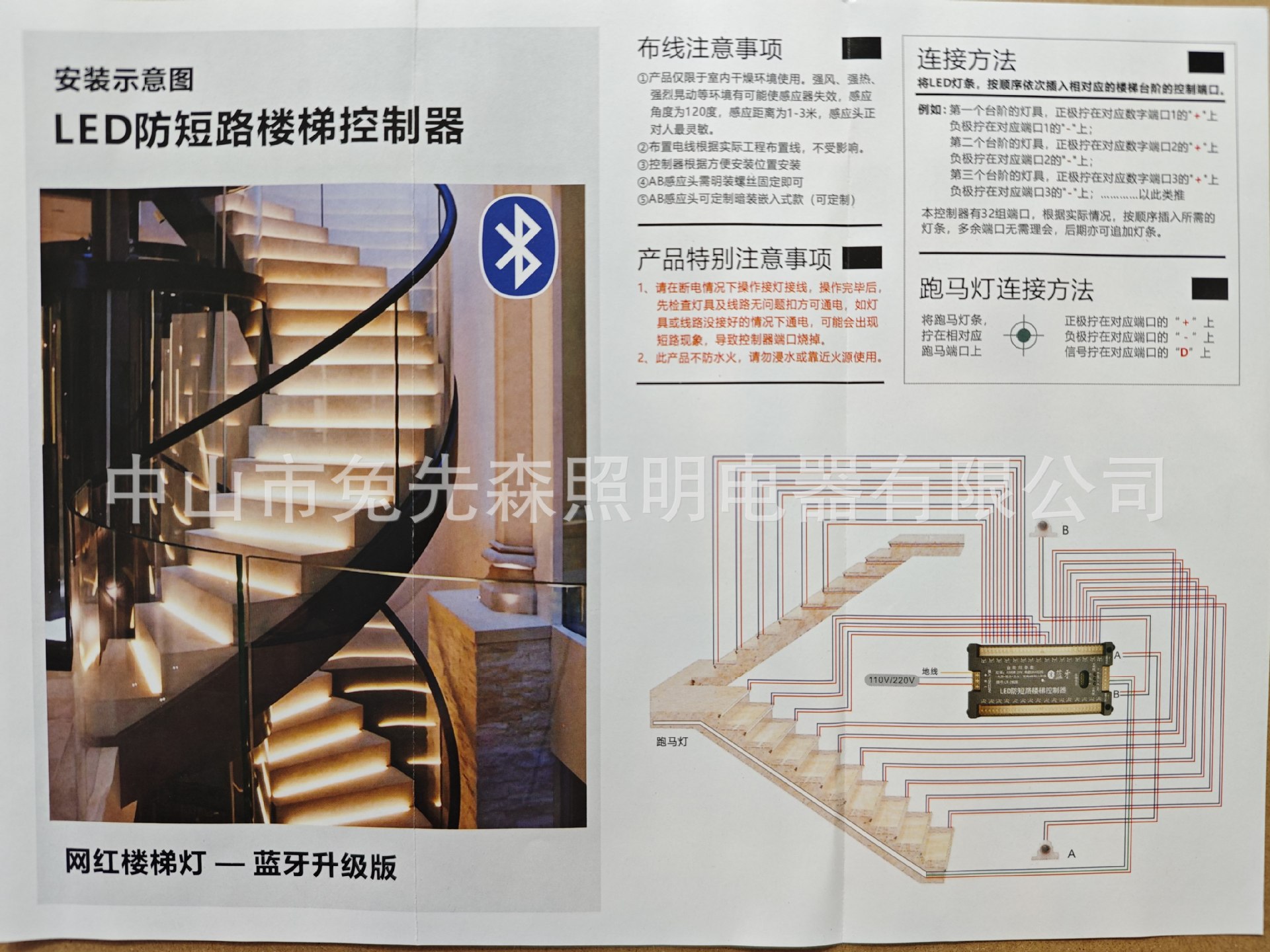 32-уровневый светодиодный контроллер лестницы с защитой от короткого замыкания, встроенный Bluetooth-датчик шага, двухпроводной датчик носителя