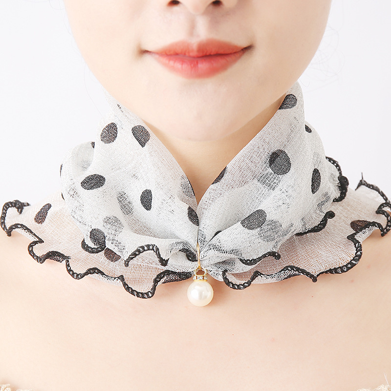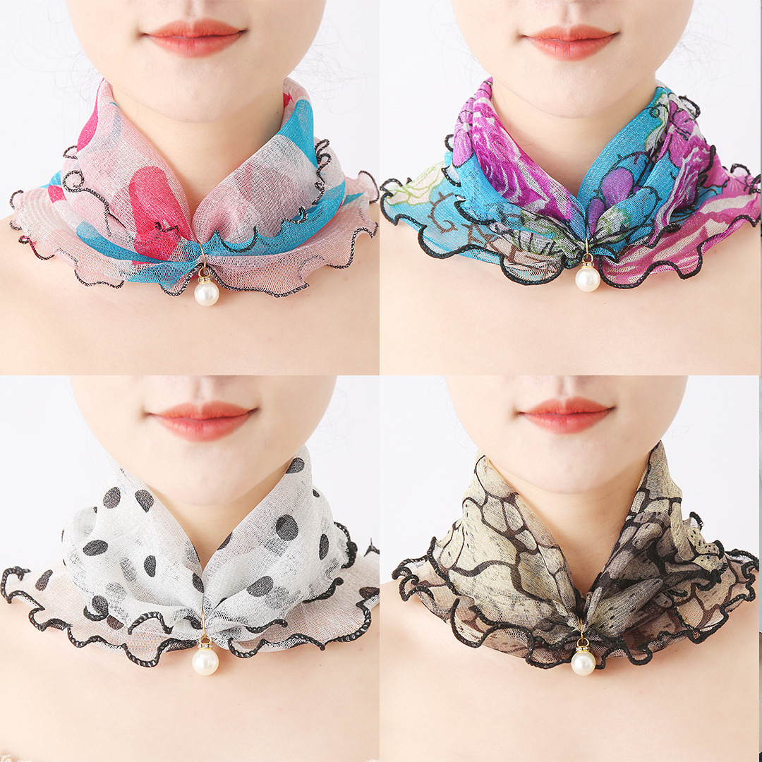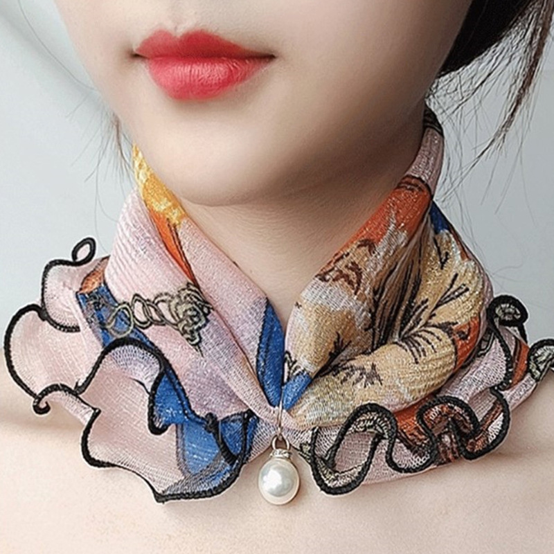 Весенне-осенний тонкий женский шарф, модная универсальная декоративная защита для шеи в корейском стиле, небольшой шелковый шарф, универсальный шейный шарф, новый сетчатый чехол для шеи.