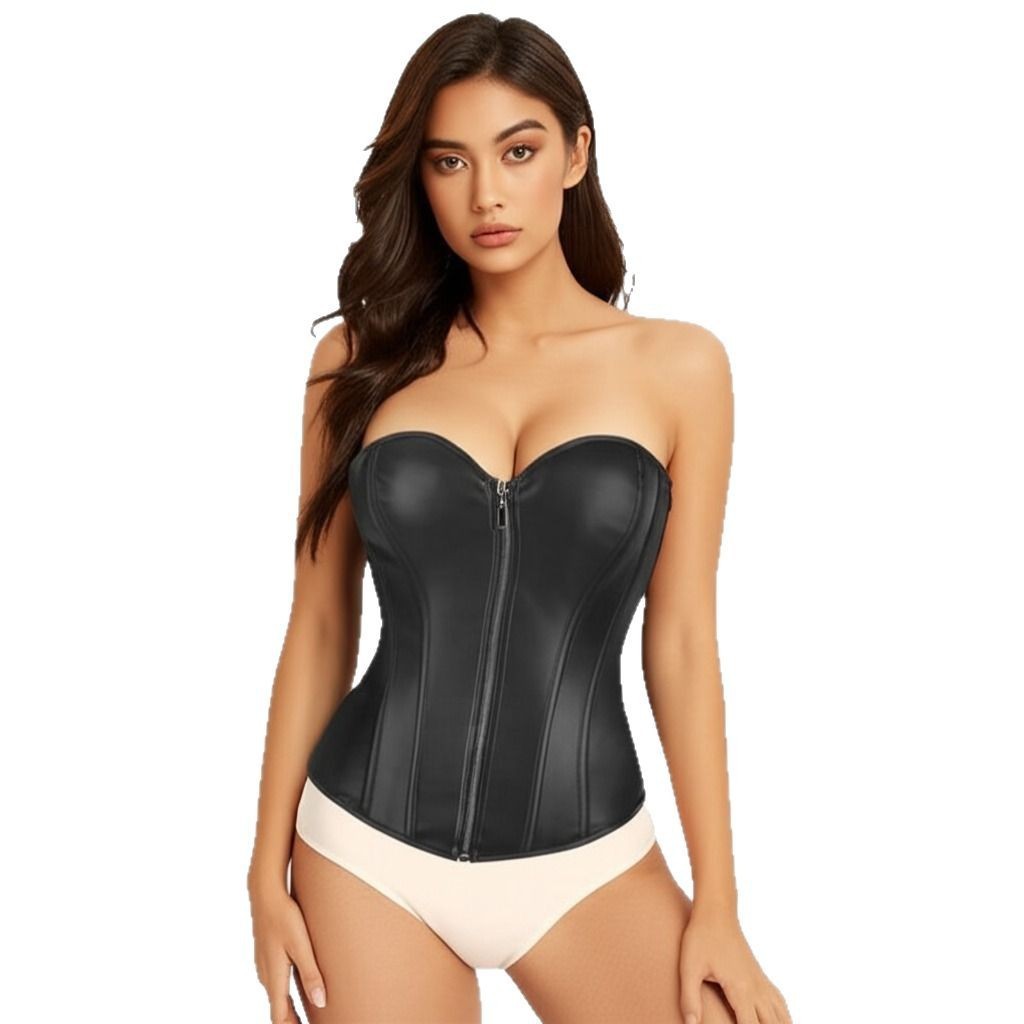 Кожаный корсет из ПУ-кожи на молнии, облегающий, с узором «рыбья кость», женский, без бретелек, для выступлений в ночном клубе, для ролевых игр