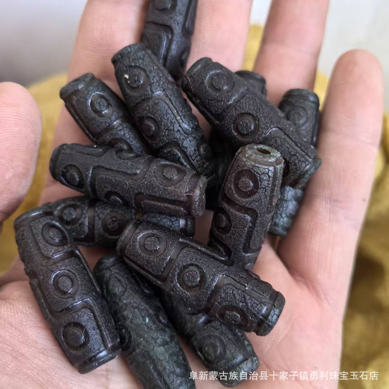 Производитель поставляет старые бусины Дзи в тибетском стиле, натуральный агат, 40 мм, черный железный антикварный Дзи с девятью глазами, свободные бусины, аксессуары.