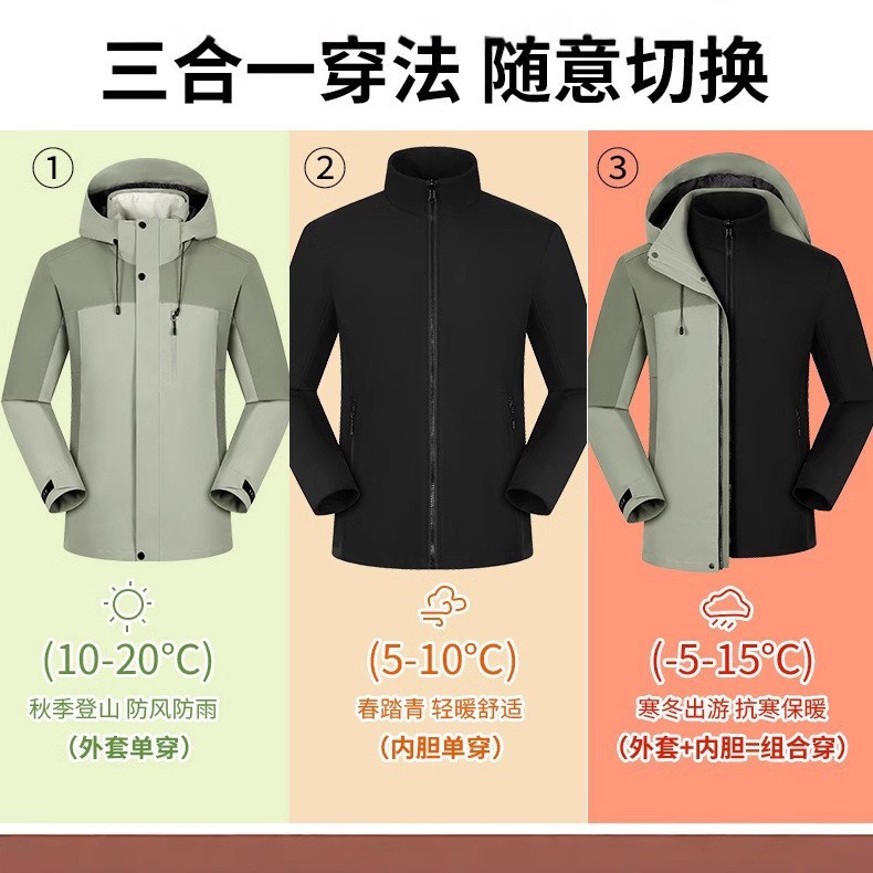 Наружная куртка пользовательского логотипа печать три в одном плюс бархат утолщенный съемный пальто вышивка рабочая одежда