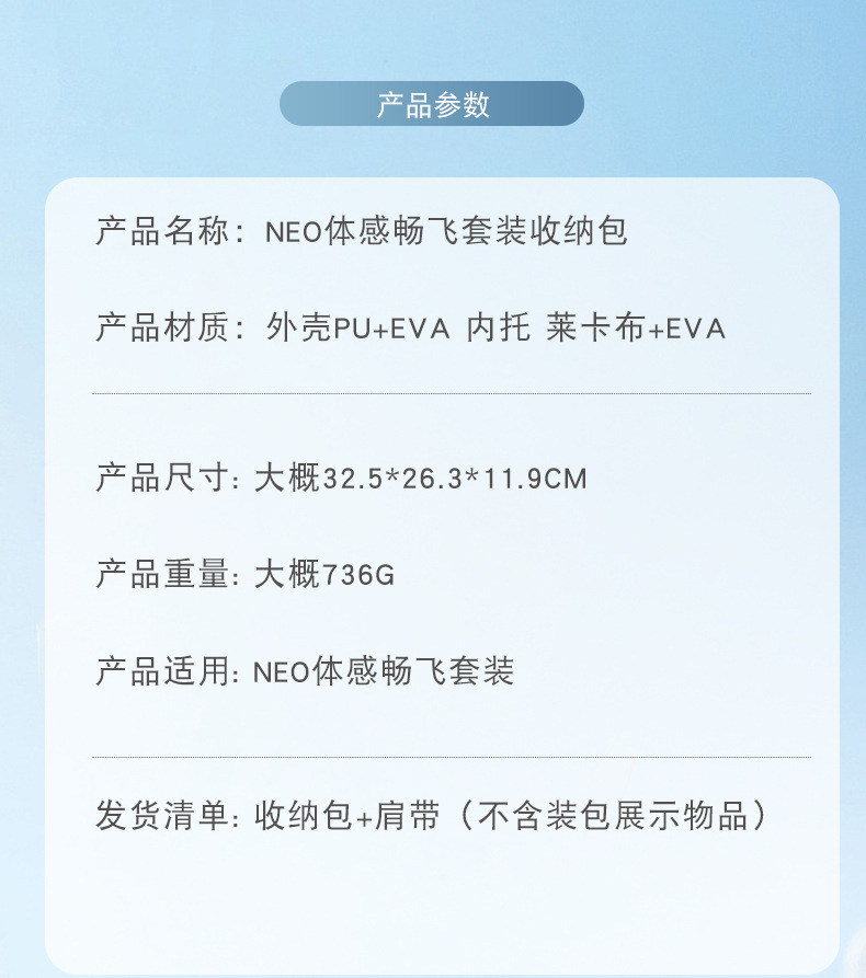 适用于:NEO体感畅飞套装收纳包(放不了遥控器)