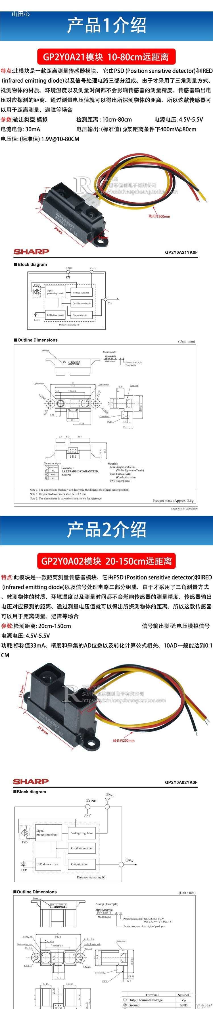 Инфракрасный датчик дальности GP2Y0A21YK0F 2Y0A02 10-80/20-150CM измерение дальности