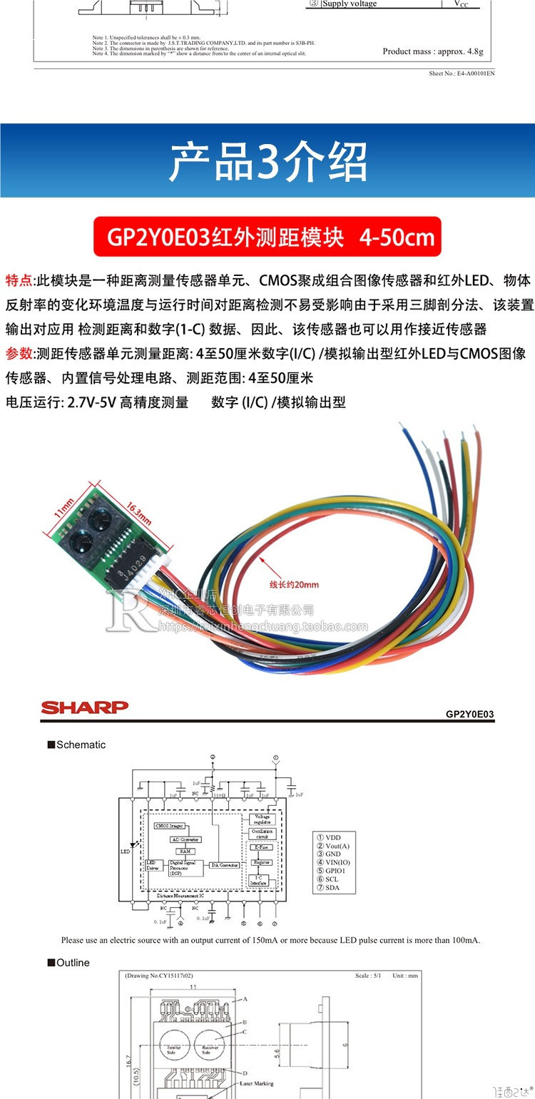GP2Y0A21YK0F Расстояние 10-80 см (1 шт.); GP2Y0A02YK0F Расстояние 20-150 см (1 шт.); GP2Y0E03 Расстояние 4-50 см (1 шт.)