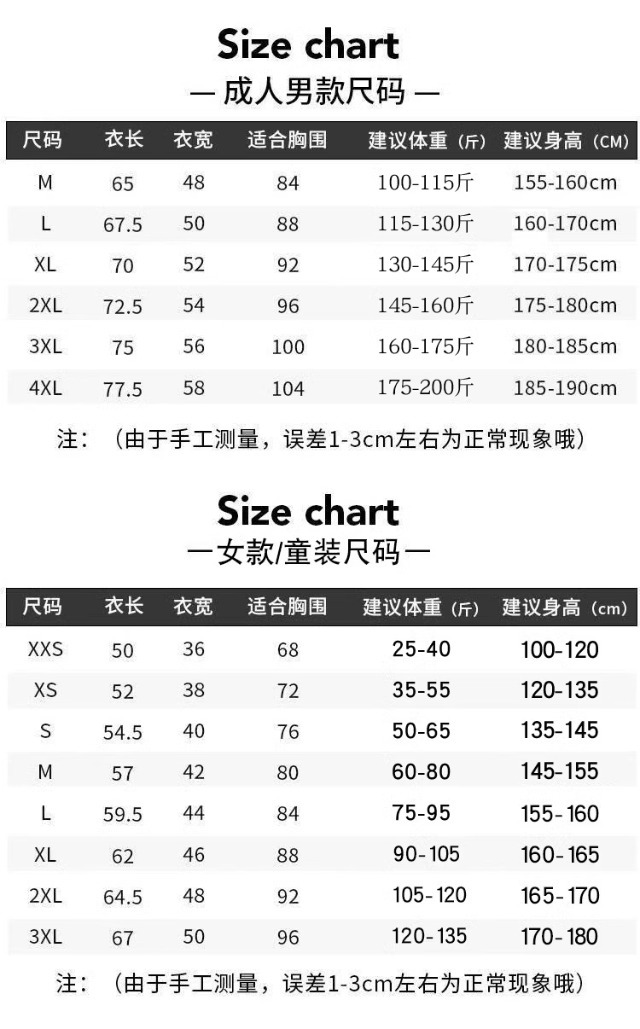 2XS; XS; S; M; L; XL; 2XL; 3XL; 4XL