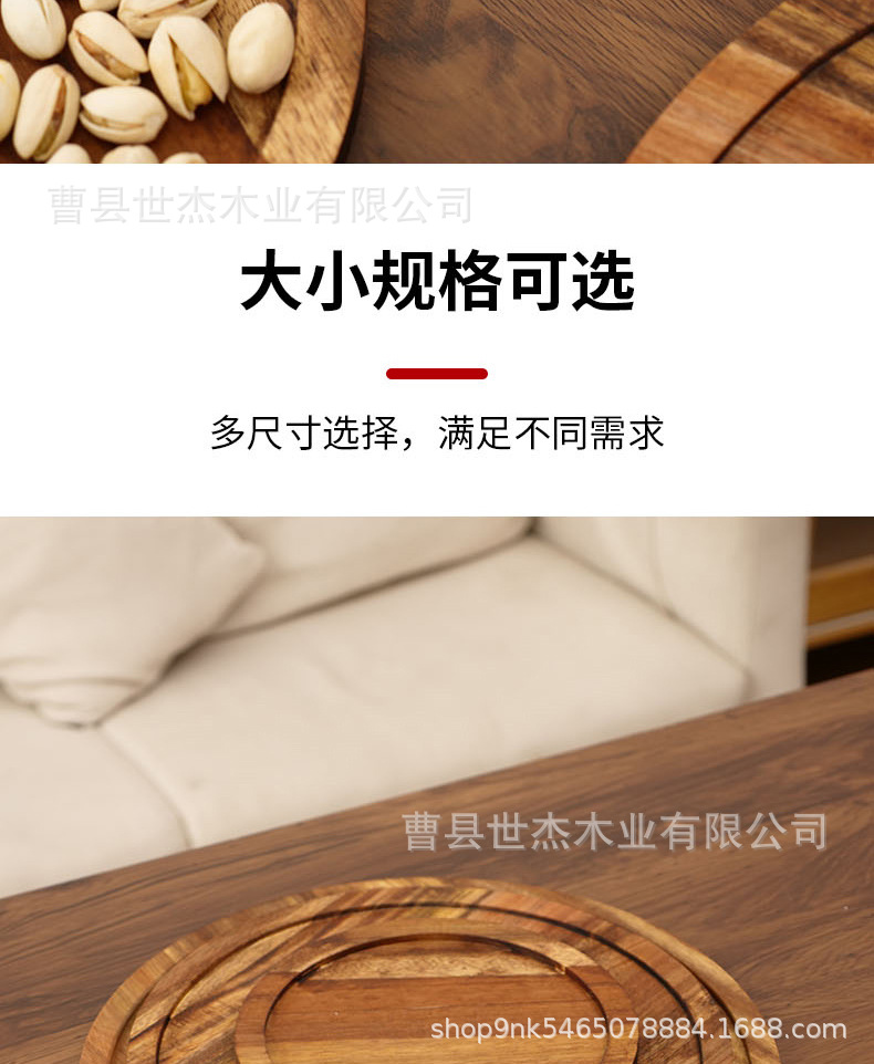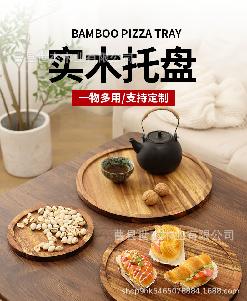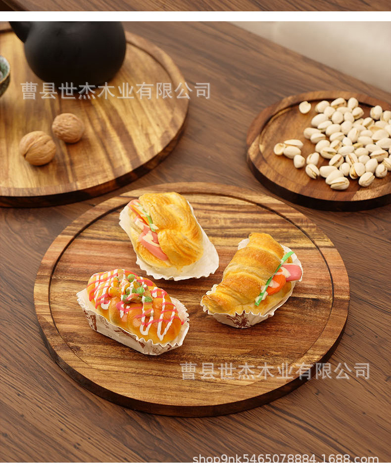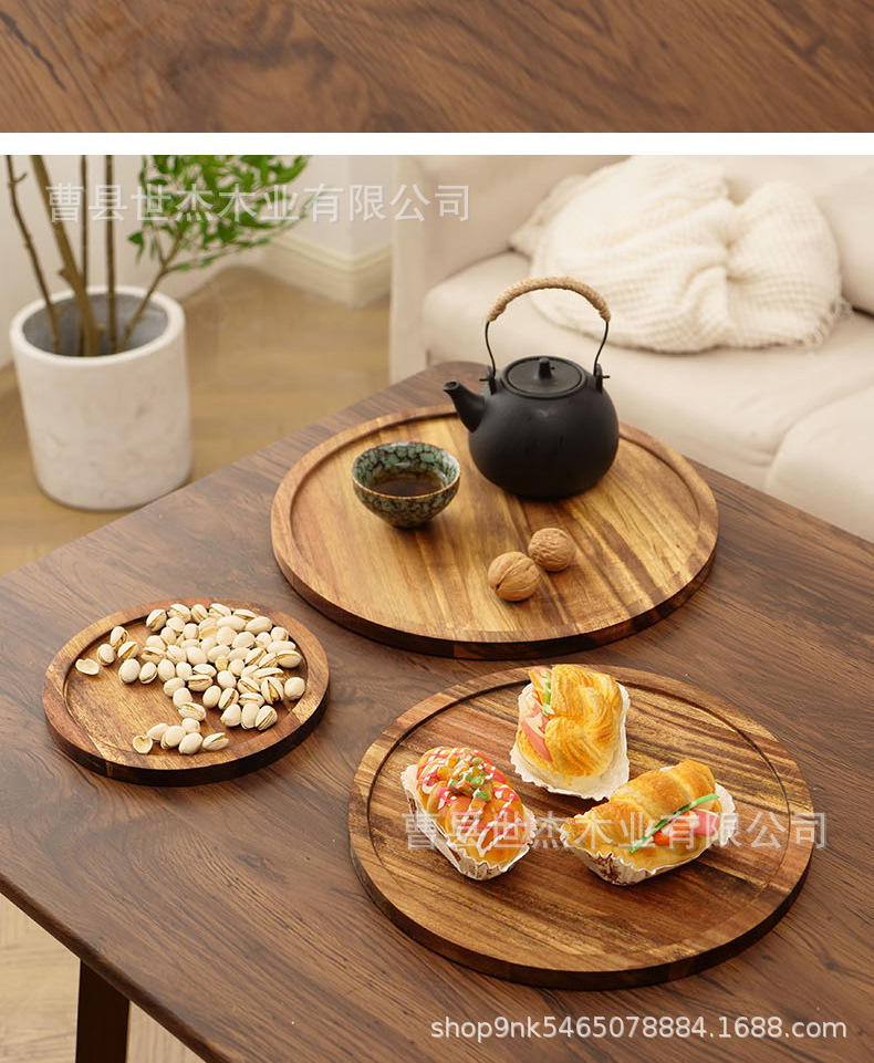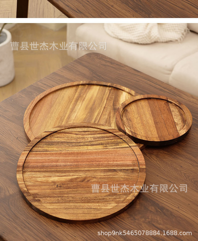 Оптовый простой круглый деревянный поднос, поднос для отеля, деревянная посуда, круглая тарелка, деревянный поднос для фруктов для дома