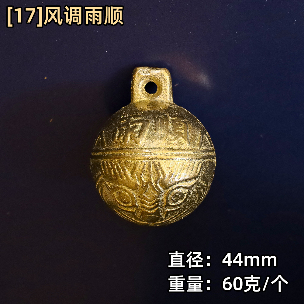 01 год и безопасный 11 мм; 03 Сяо Фугуй 17 мм; 04 Большая удача 20 мм; 05 Маленький Бог Тигр 19мм; 06 Большой Бог Тигр 22мм; 07 плоская голова тигра 25мм; 08 телячий глаз 27мм; 09 Далинджи 28мм; 10-летний Пин Ан 32 мм; 11 Сяохувэй 32 мм; 12 больших тигровой мощности 36 мм; 13 Колокольчик Фушоу 34 мм; 14 больших яблочных глаз 36 мм; 15 ветер и дождь 38мм; 16 больших голов льва 42 мм.; 17 Хорошая погода 44мм; 18 Колокольчик Кирин 48 мм; 19 Хорошая погода 51мм; 20 Хорошая погода 53 мм; 21 колокольчик 52 мм