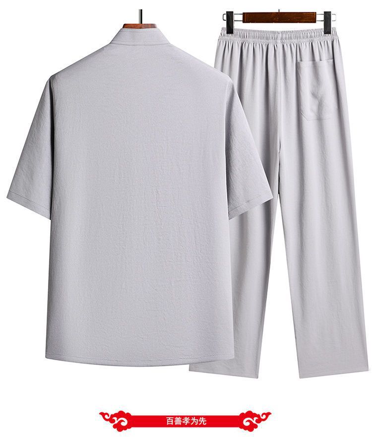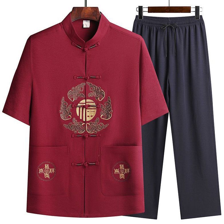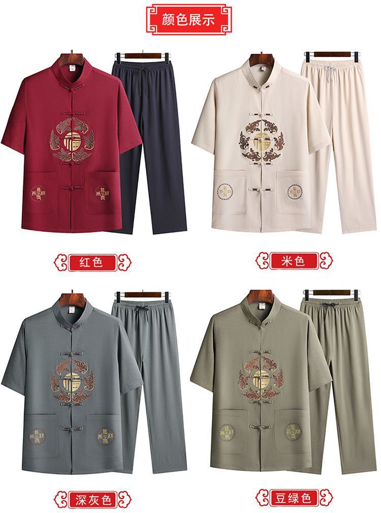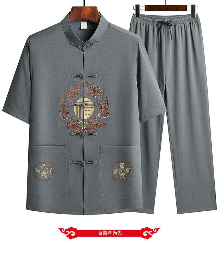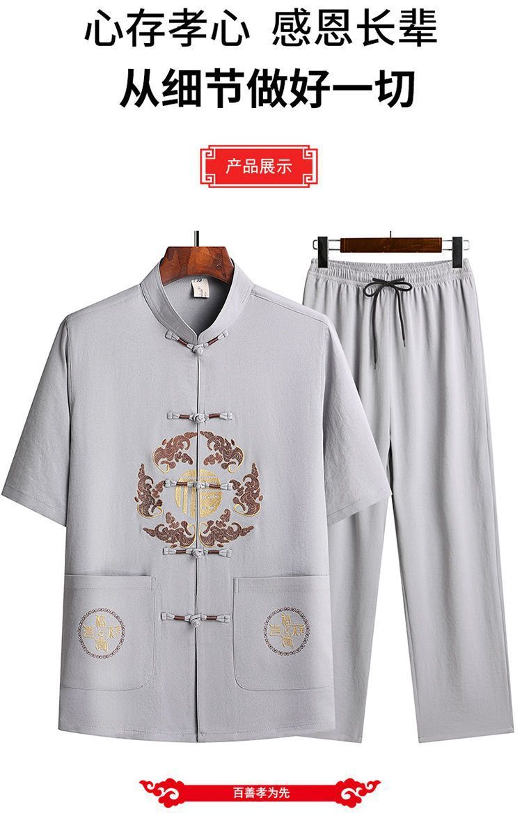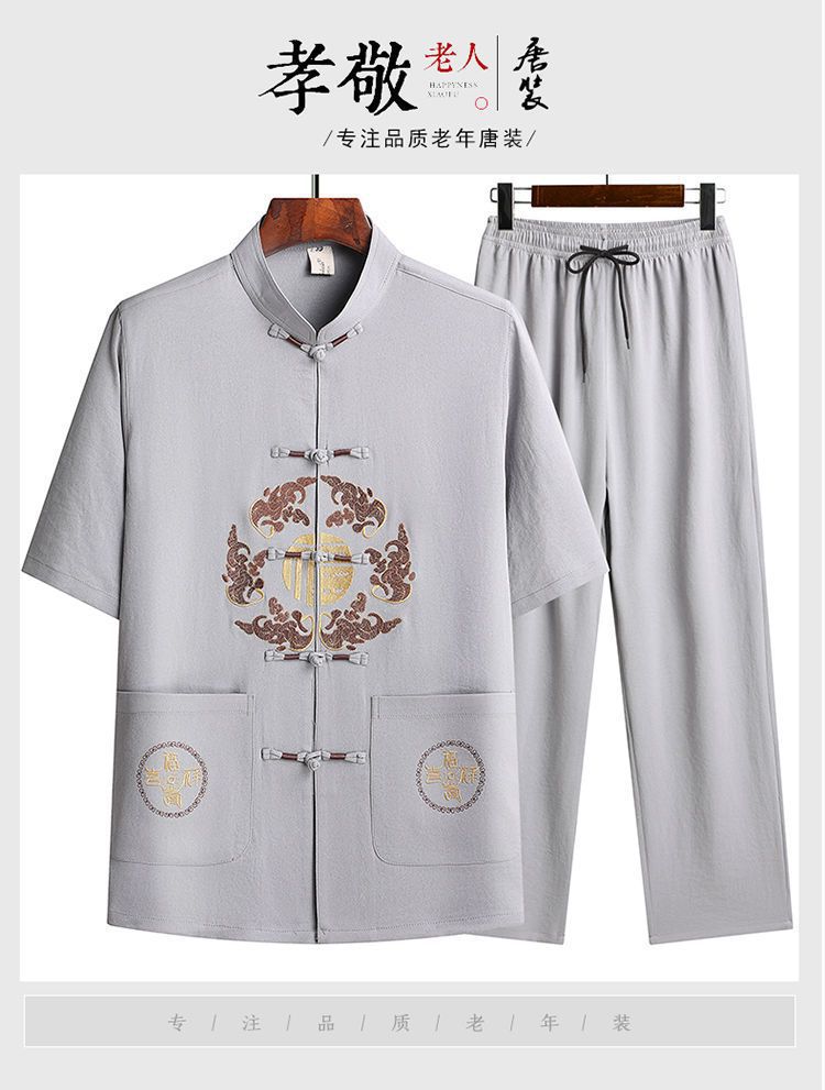 Тан костюм мужской ледяной шелк с короткими рукавами Летний тонкий китайский стиль дедушка свободная одежда для пожилых людей