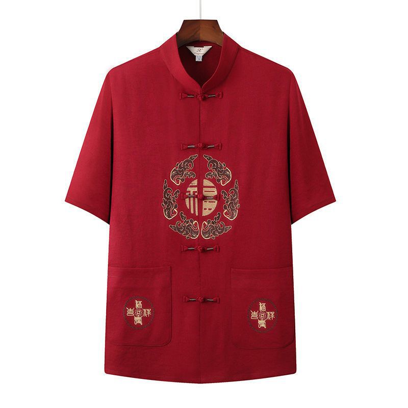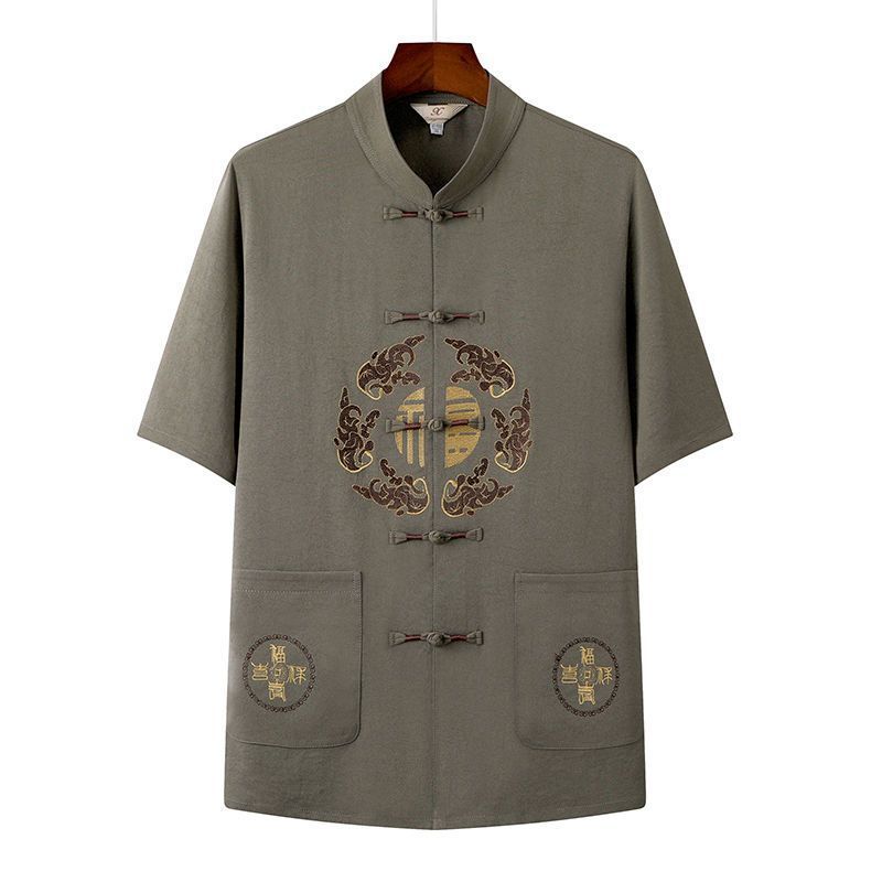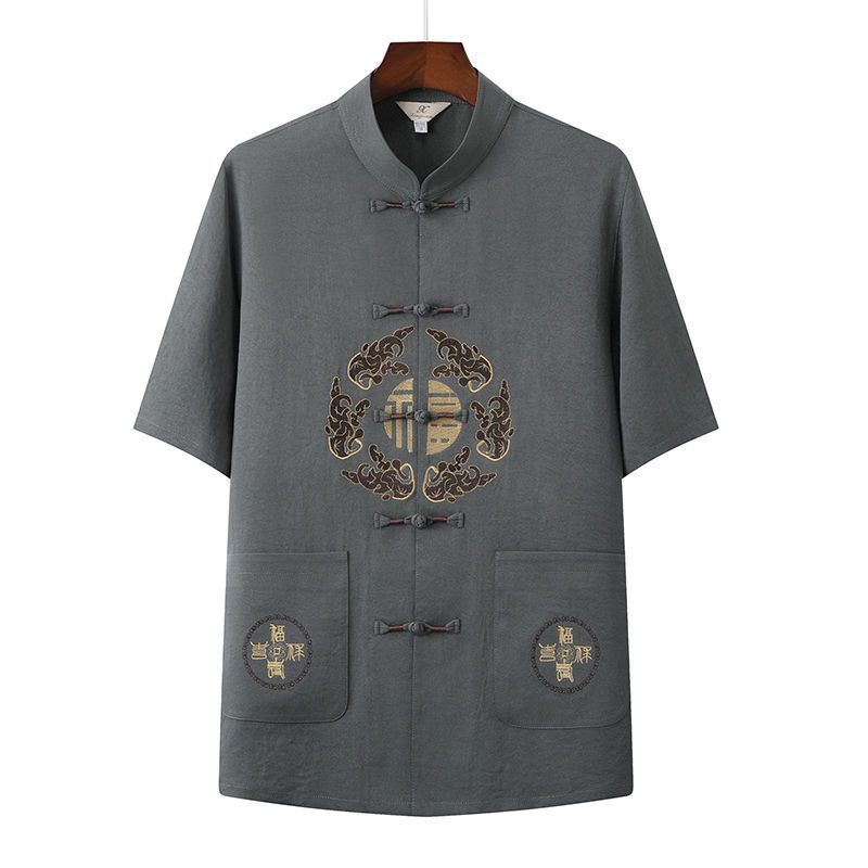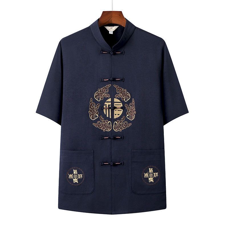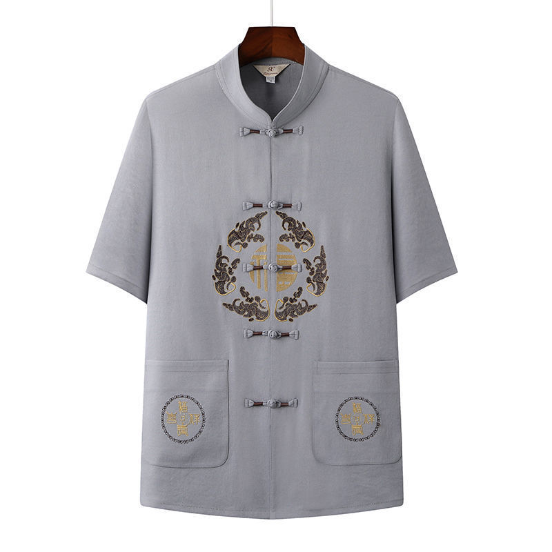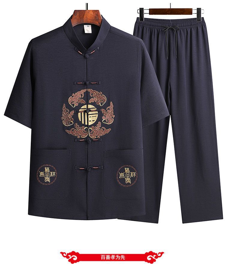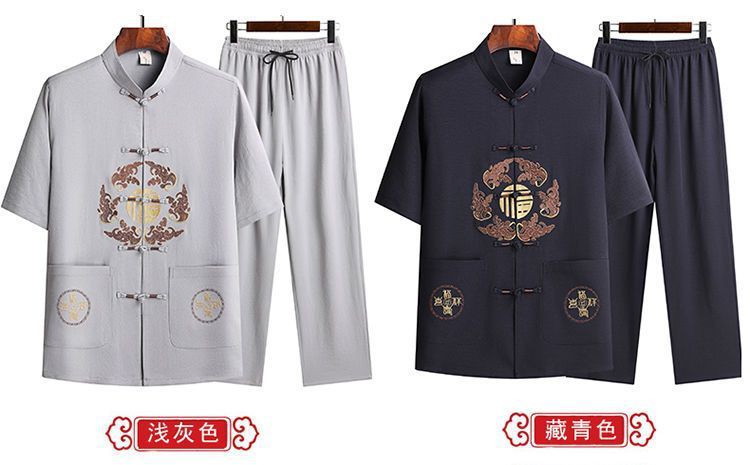 Тан костюм мужской ледяной шелк с короткими рукавами Летний тонкий китайский стиль дедушка свободная одежда для пожилых людей