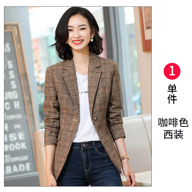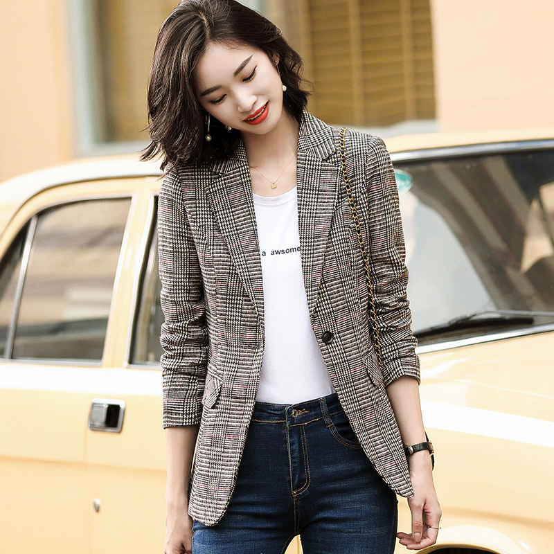 Клетчатый пиджак женский в корейском стиле в британском стиле осенне-зимний повседневный ретро маленький костюм в гонконгском стиле модный топ 9913