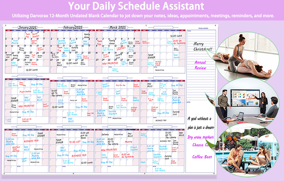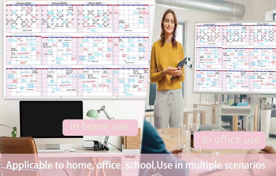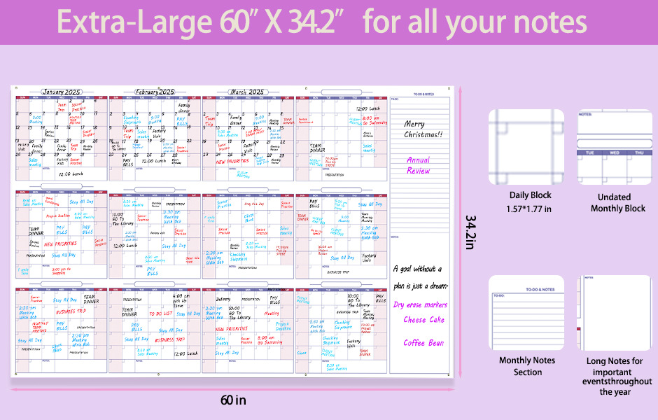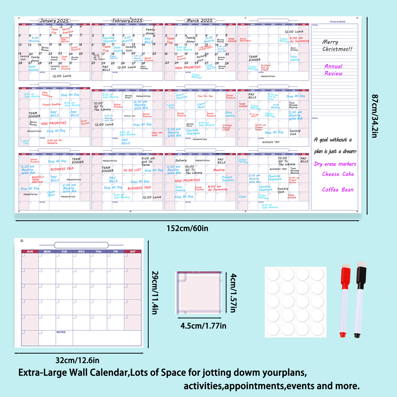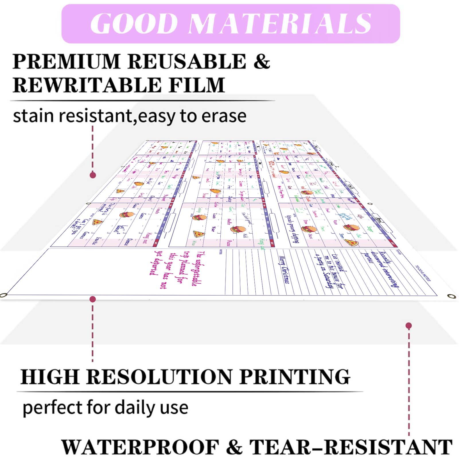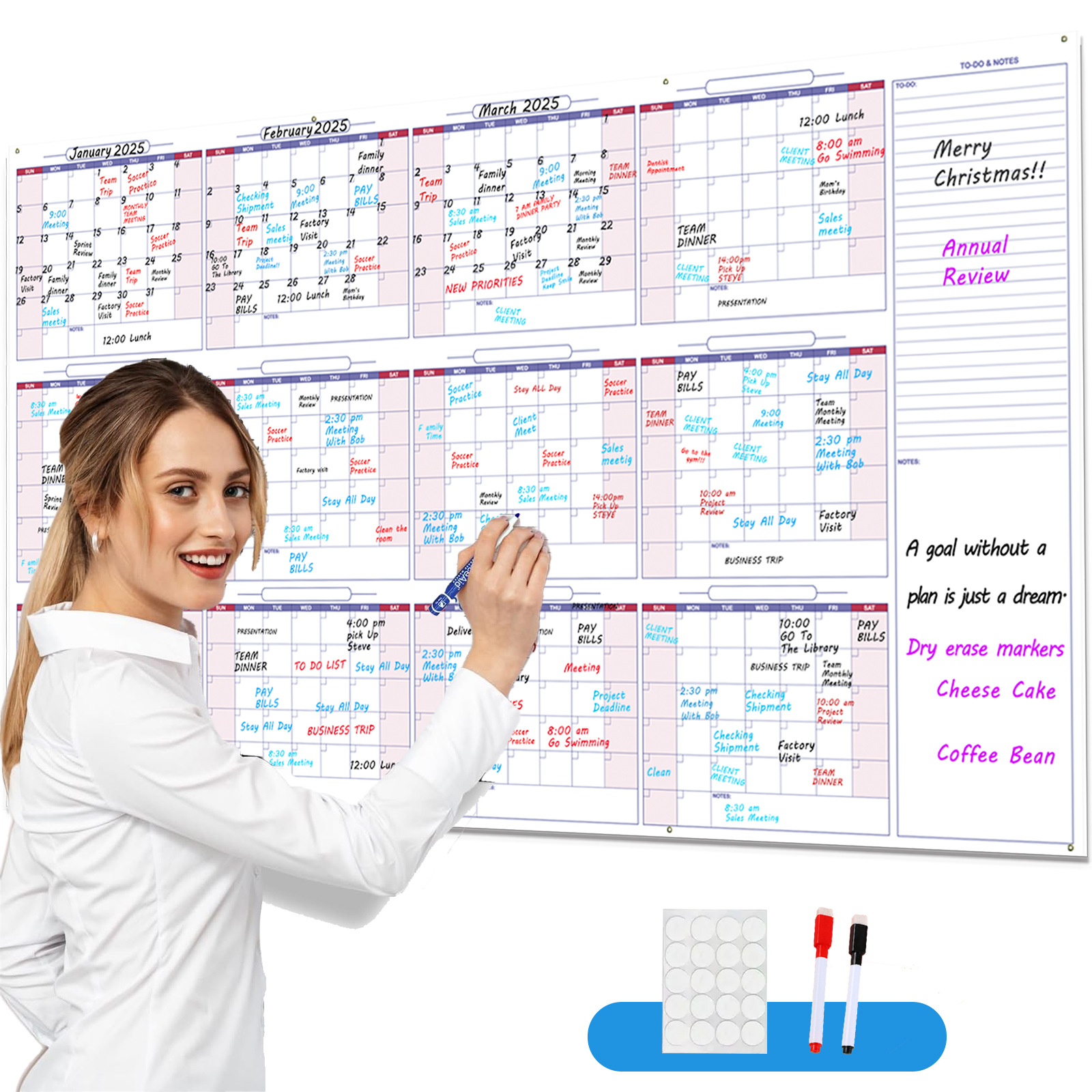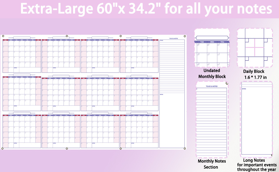 34x60inch Большой стираемый календарь-планировщик без даты с металлическими отверстиями.