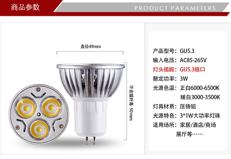 контакт GU5.3 220 В#3 Вт; Ножка карты GU10 220В#3 Вт; Винтовой порт E27, 220 В#3 Вт; Контакт MR16, низкое напряжение 12 В#3 Вт