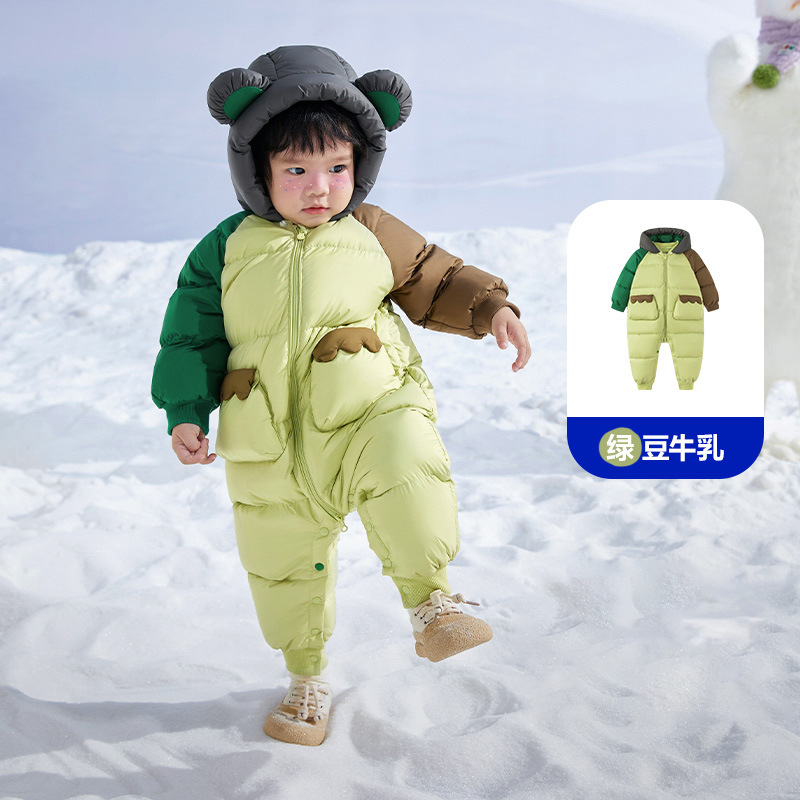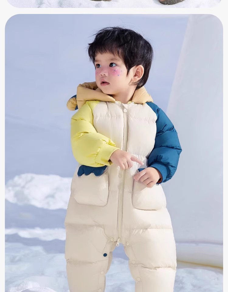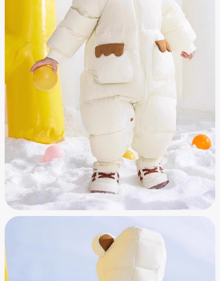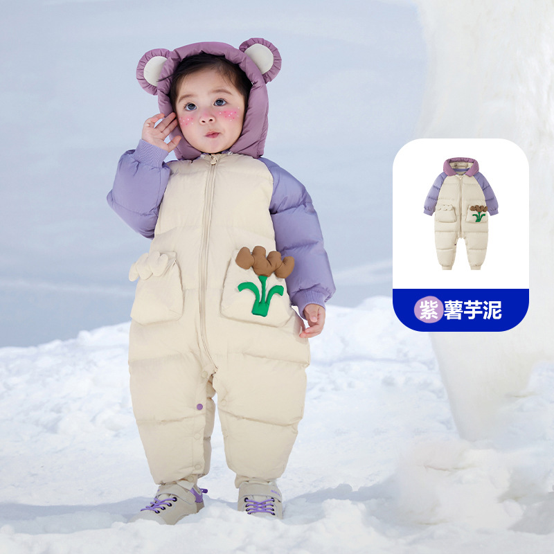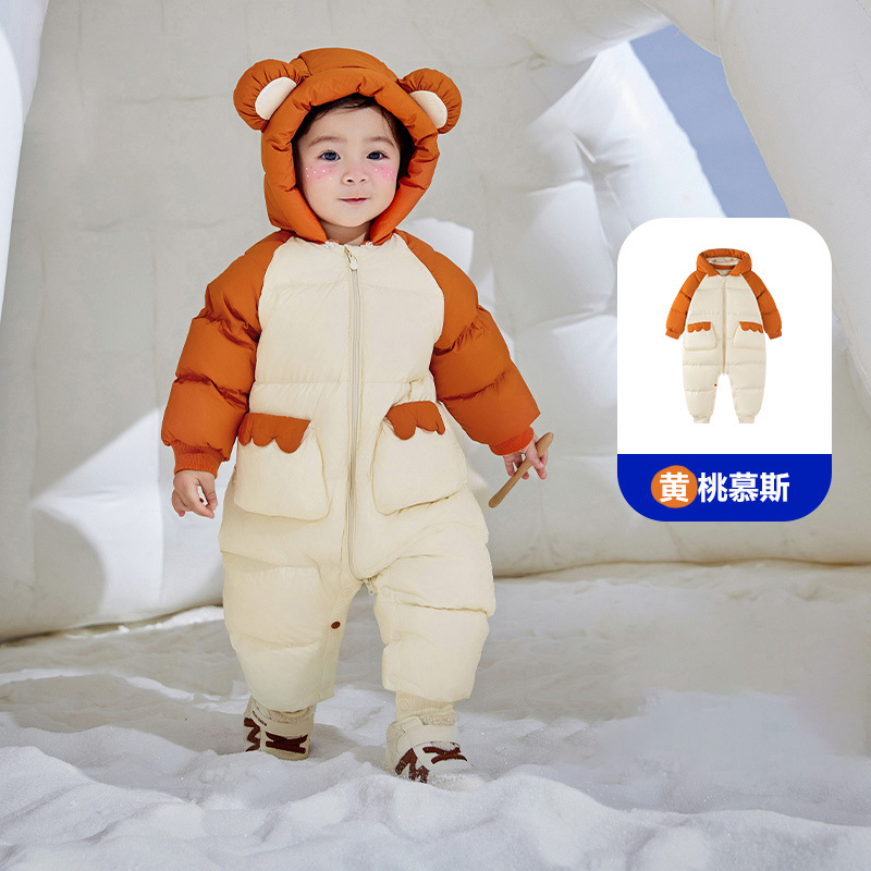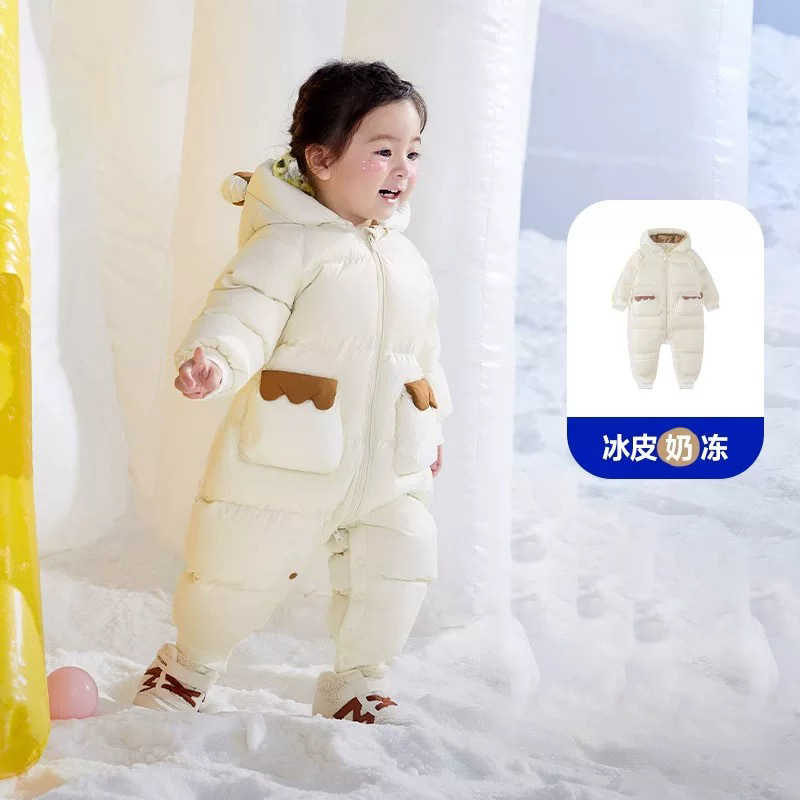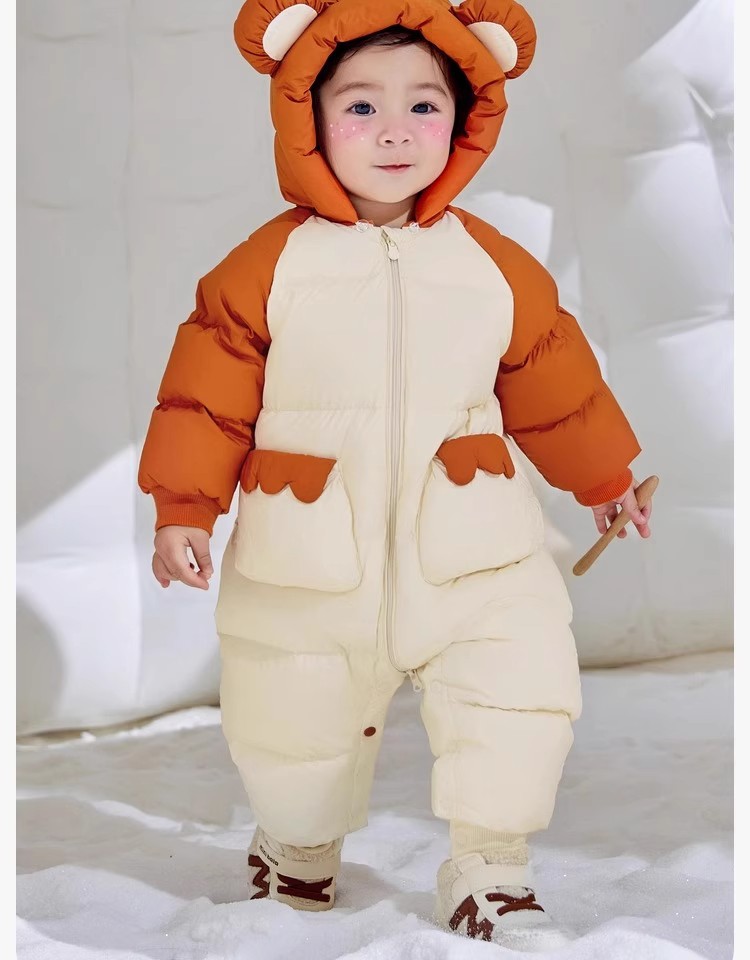 Детский пуховый комбинезон для улицы, зимняя одежда для малышей унисекс, милый и модный утолщенный комбинезон.