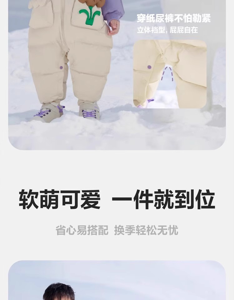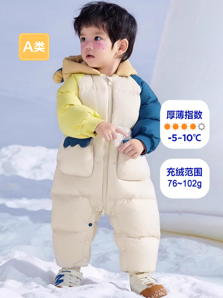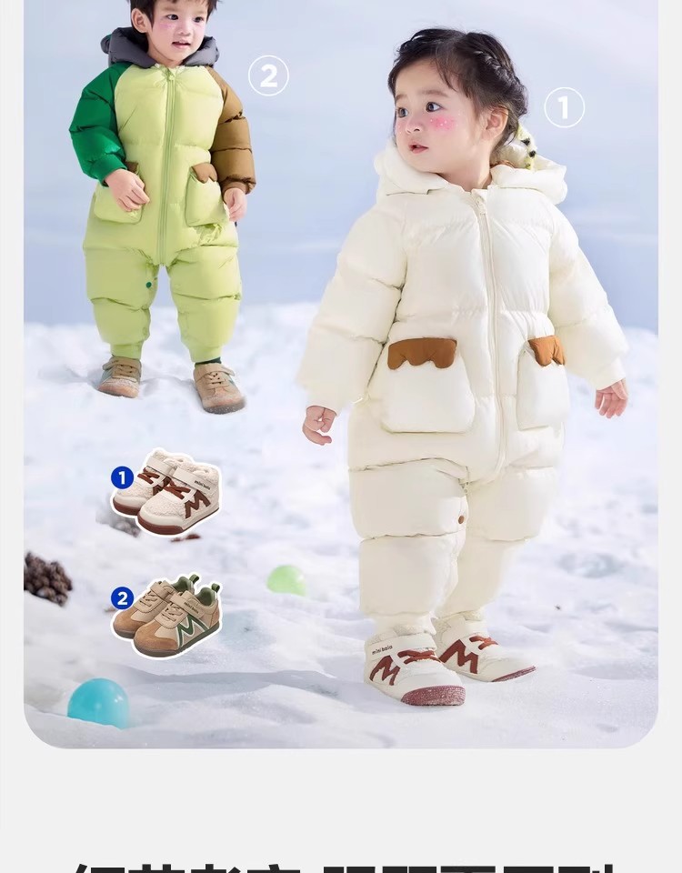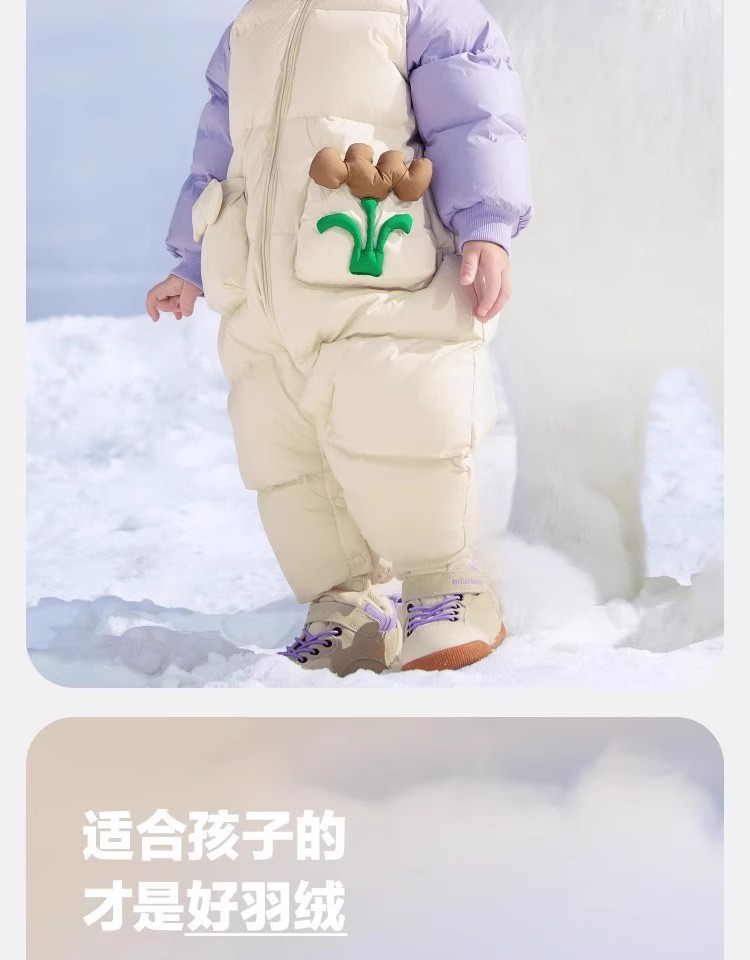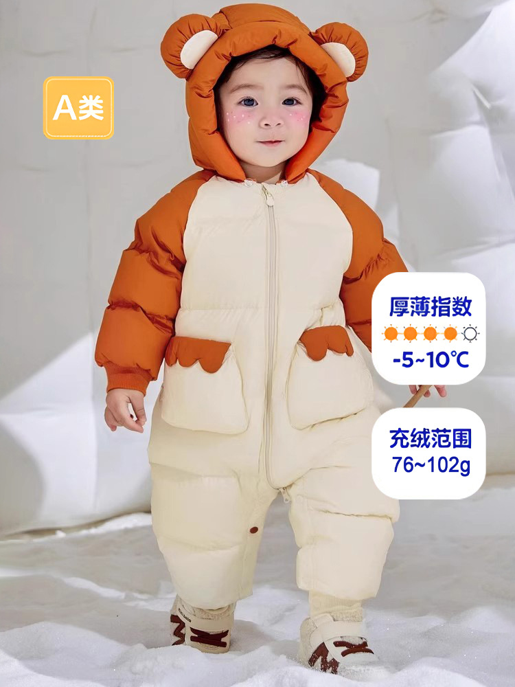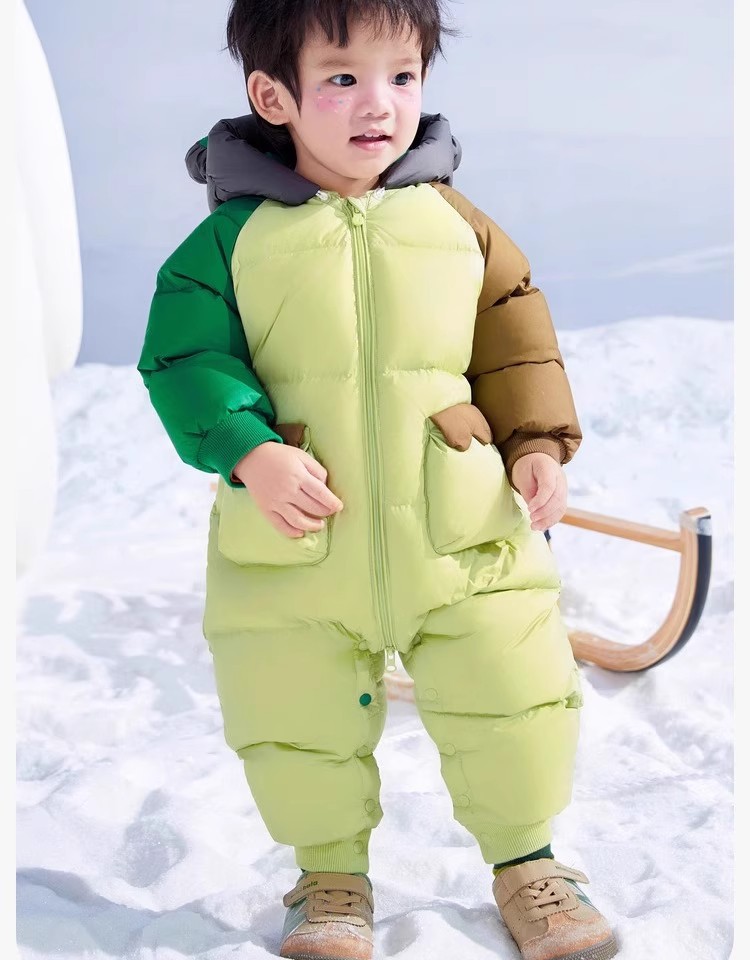 Детский пуховый комбинезон для улицы, зимняя одежда для малышей унисекс, милый и модный утолщенный комбинезон.