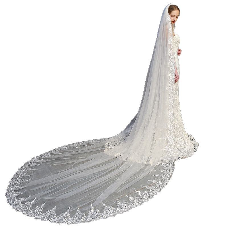 Новая фата для невесты, европейская и американская, высококачественная кружевная, широкая, с длинным шлейфом, свадебная фата для фотосъемки