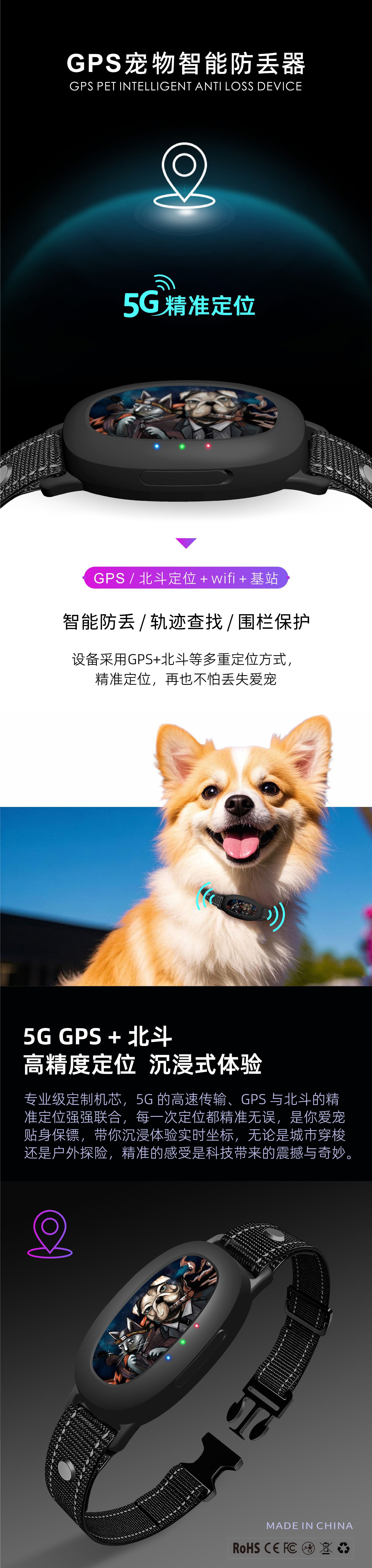GPS-трекер для собак и кошек 5G, ошейник для отслеживания питомцев, устройство против потери, точное интеллектуальное устройство для отслеживания.