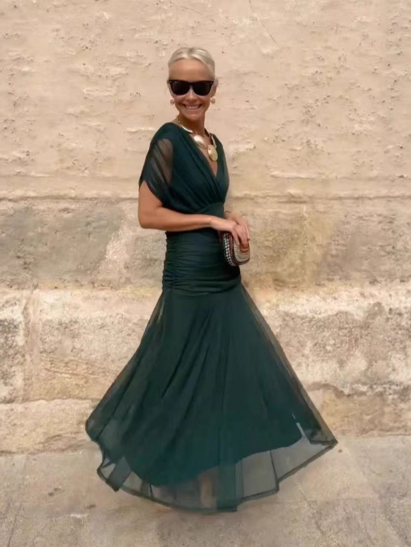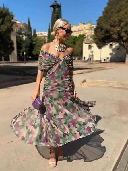 Кросс-бордерное платье-сарафан с сетчатым принтом, новинка весны-лета 2025 года, европейский и американский стиль, для отдыха, вечеринок и повседневной носки (INS)