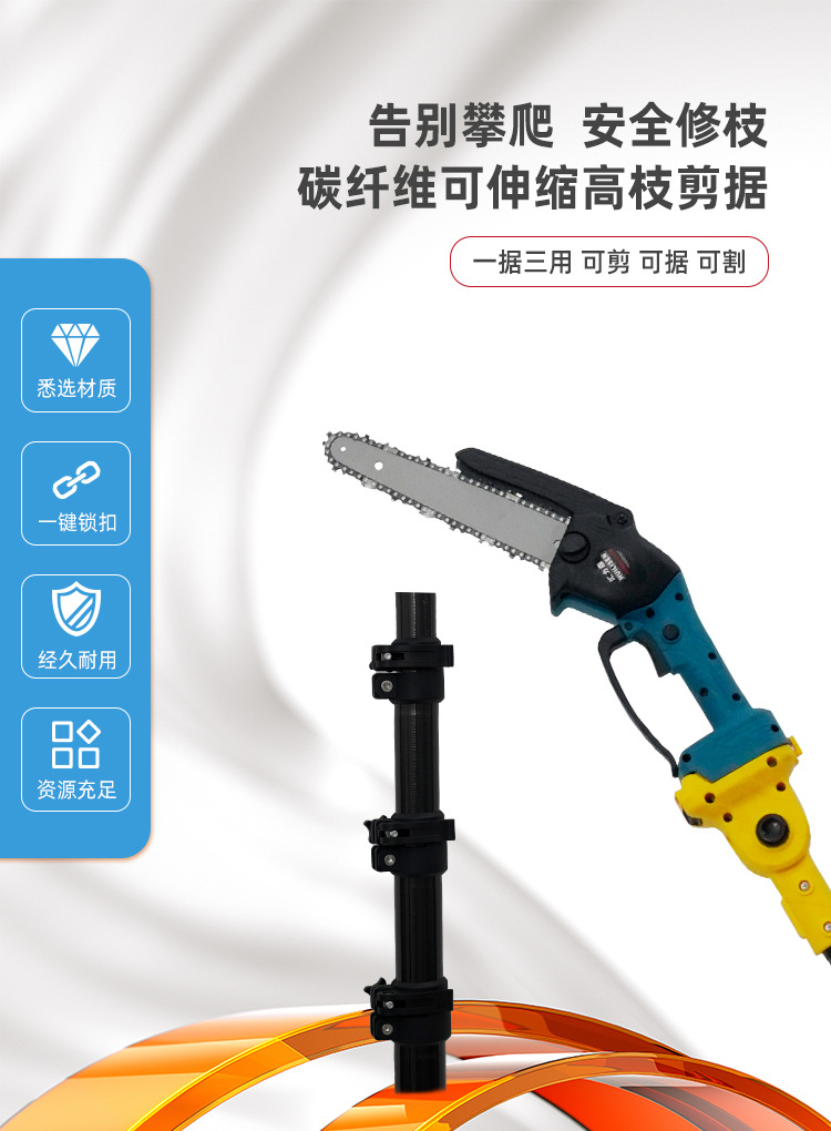 Высокогорные телескопические электрические ножницы из углеродного волокна, садовые инструменты, портативные сменные головки, высокогорные ножницы для обрезки фруктовых деревьев