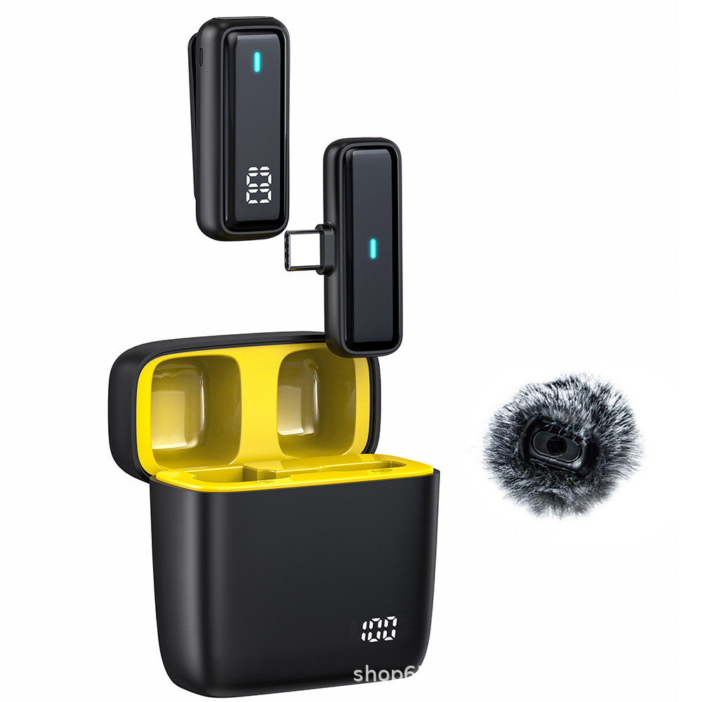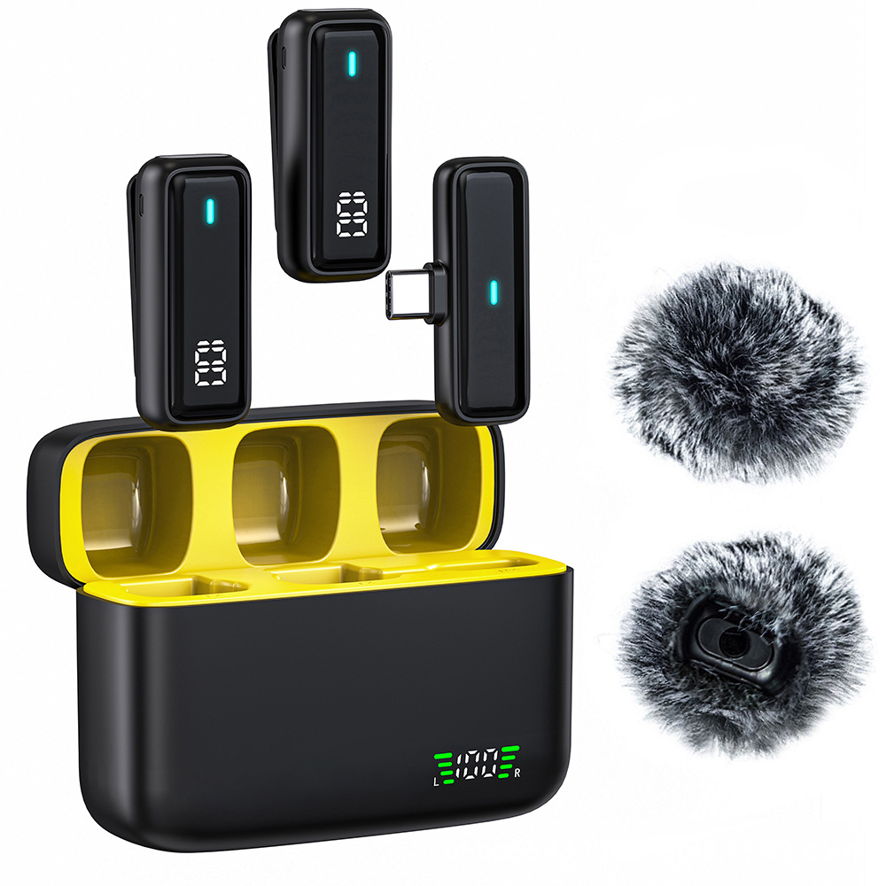 Микрофон-петличка с цифровым дисплеем и зарядным кейсом, двухканальный микрофон для прямых трансляций, миниатюрный, специально для стриминга.
