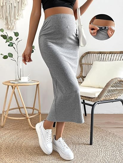 Юбка для беременных Amazon AliExpress с высокой талией сплошная реберная вязаная юбка для беременных внешнеторговая трансграничная юбка-карандаш