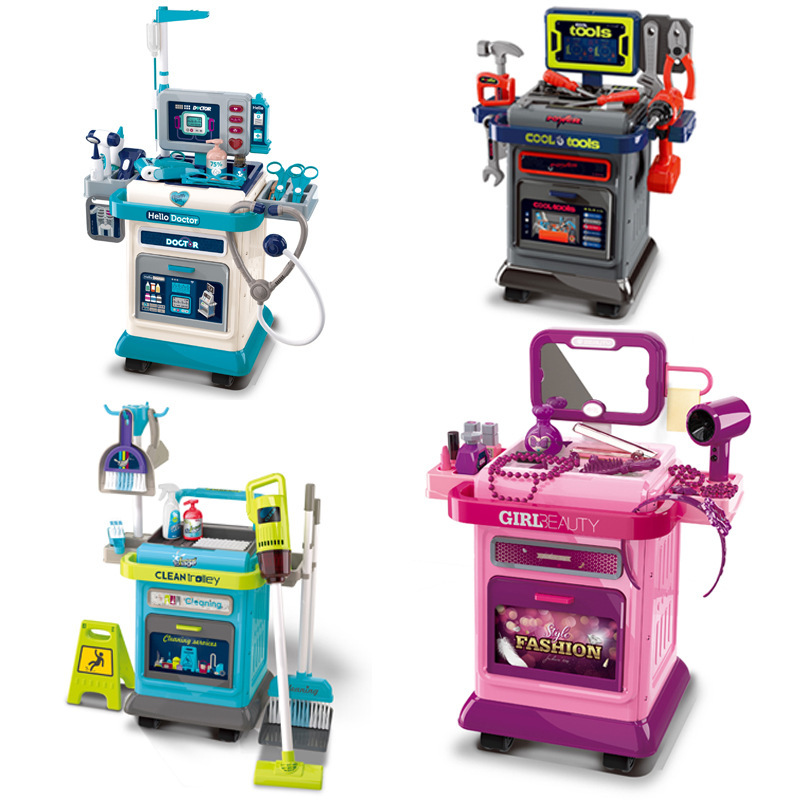 Набор трансграничных колясок, инструменты для игрового дома, косметические медицинские инструменты, чистящие подарки для мальчиков и девочек, детские игрушки для внешней торговли.
