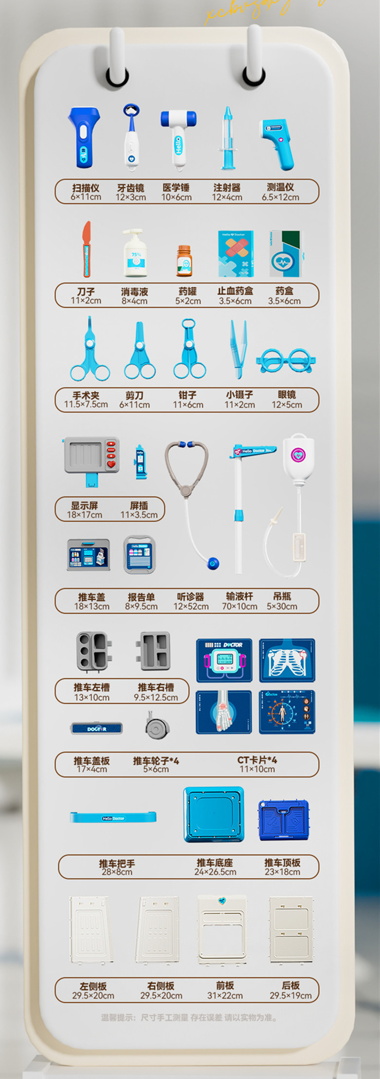 Тележка для инструментов: 008-202 (английская цветная коробка); Косметическая тележка: 008-203 (английская цветная коробка); Тележка для медицинского оборудования: 008-205 (английская цветная коробка); Тележка для уборки: 008-206 (английская цветная коробка)