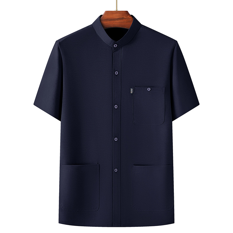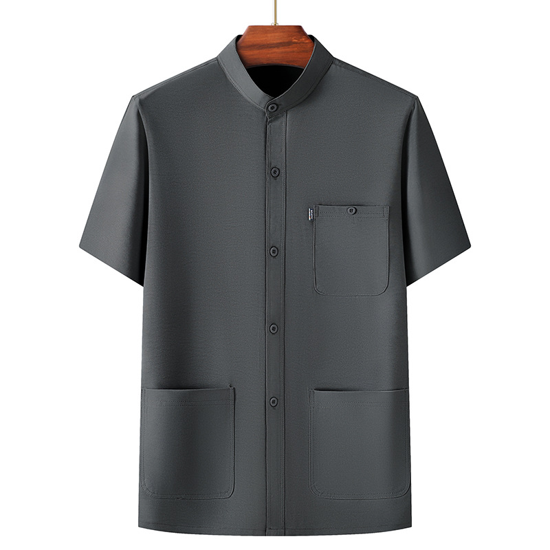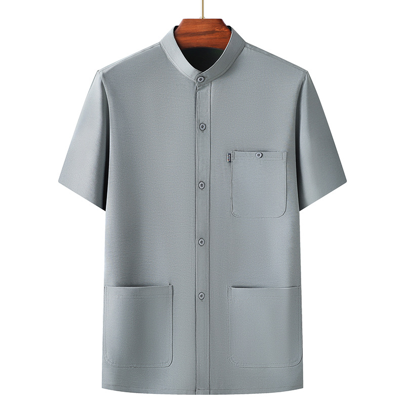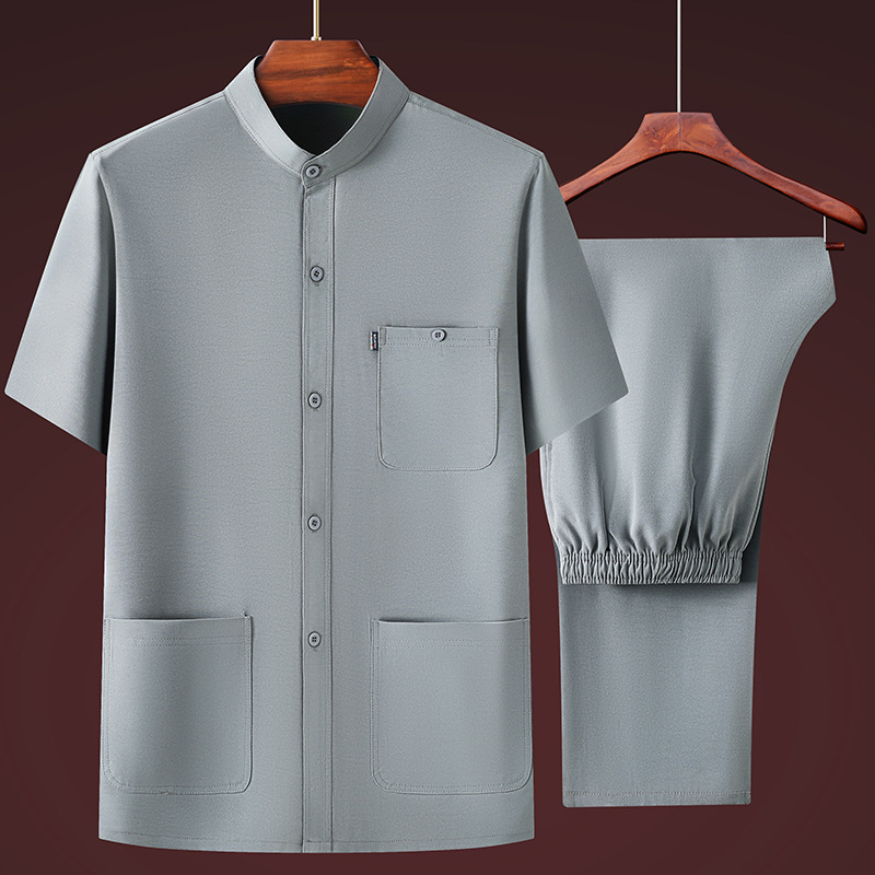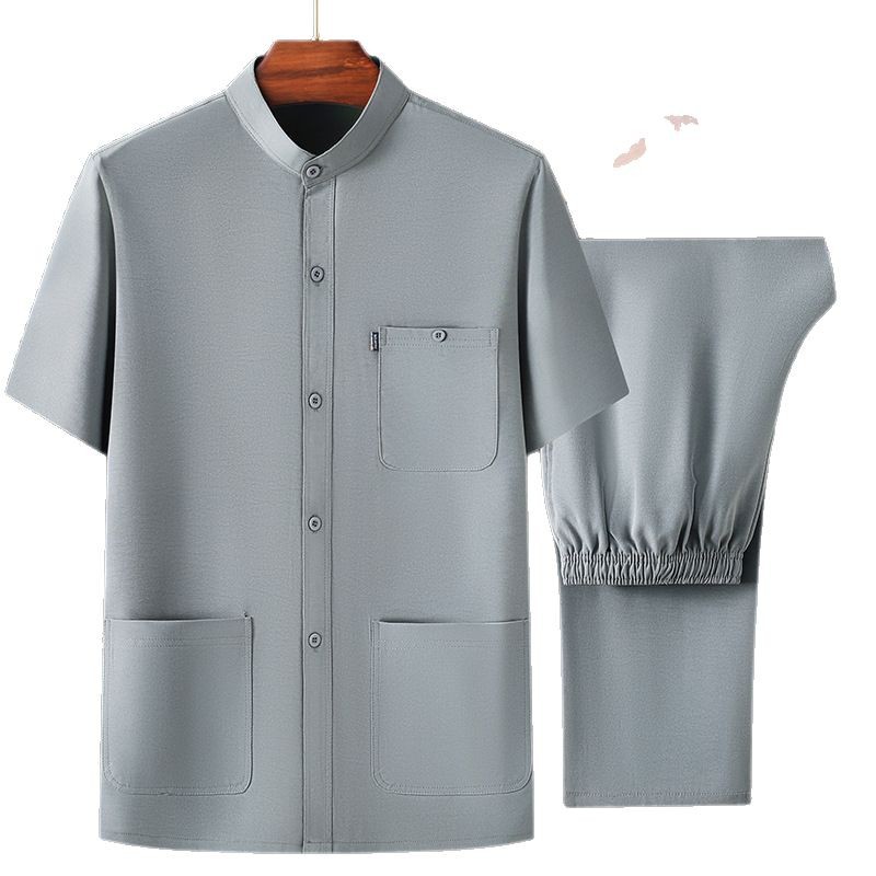 Средний и пожилой летний мужской тонкий ледяной шелковый набор с короткими рукавами
