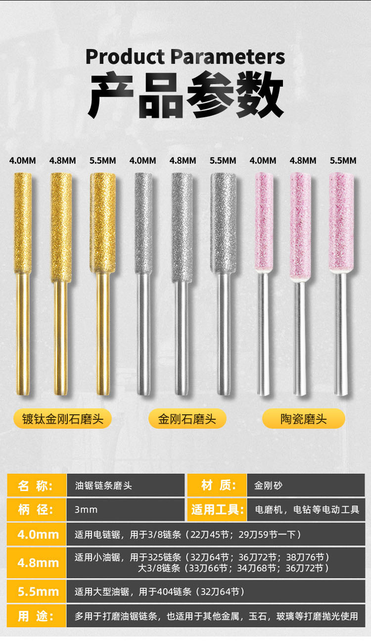 Набор алмазных шлифовальных головок, твердосплавных роторных напильников, для заточки цепных пил, инструментов для полировки и шлифовки с абразивом