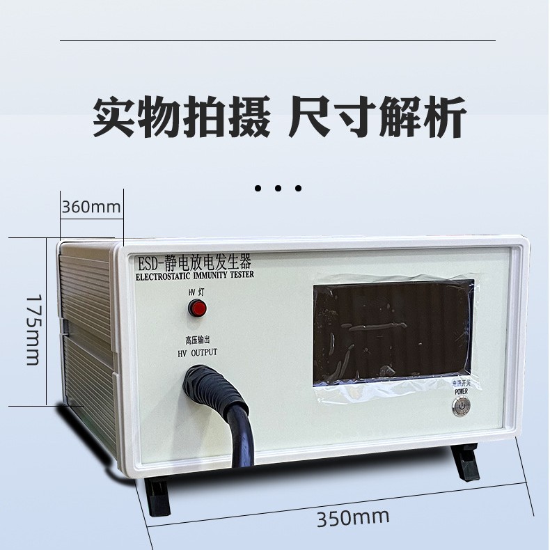 Используется для тестирования на электростатический разряд античеловеческих металлических моделей цифрового оборудования системного уровня, такого как мобильные телефоны и компьютеры. В комплект входит электростатический генератор и пистолет для электростатического разряда.