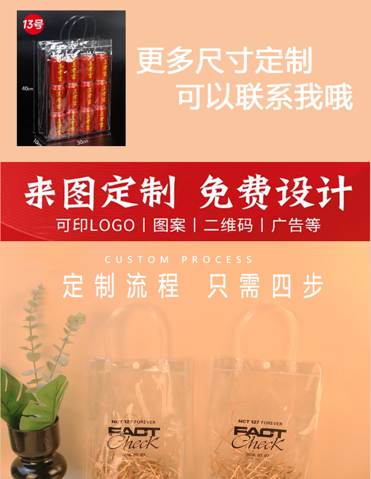 ПВХ прозрачная сумка Трансграничная оптовая продажа подарков с молочным чаем в упаковке водонепроницаемый пластиковый ручной мешок