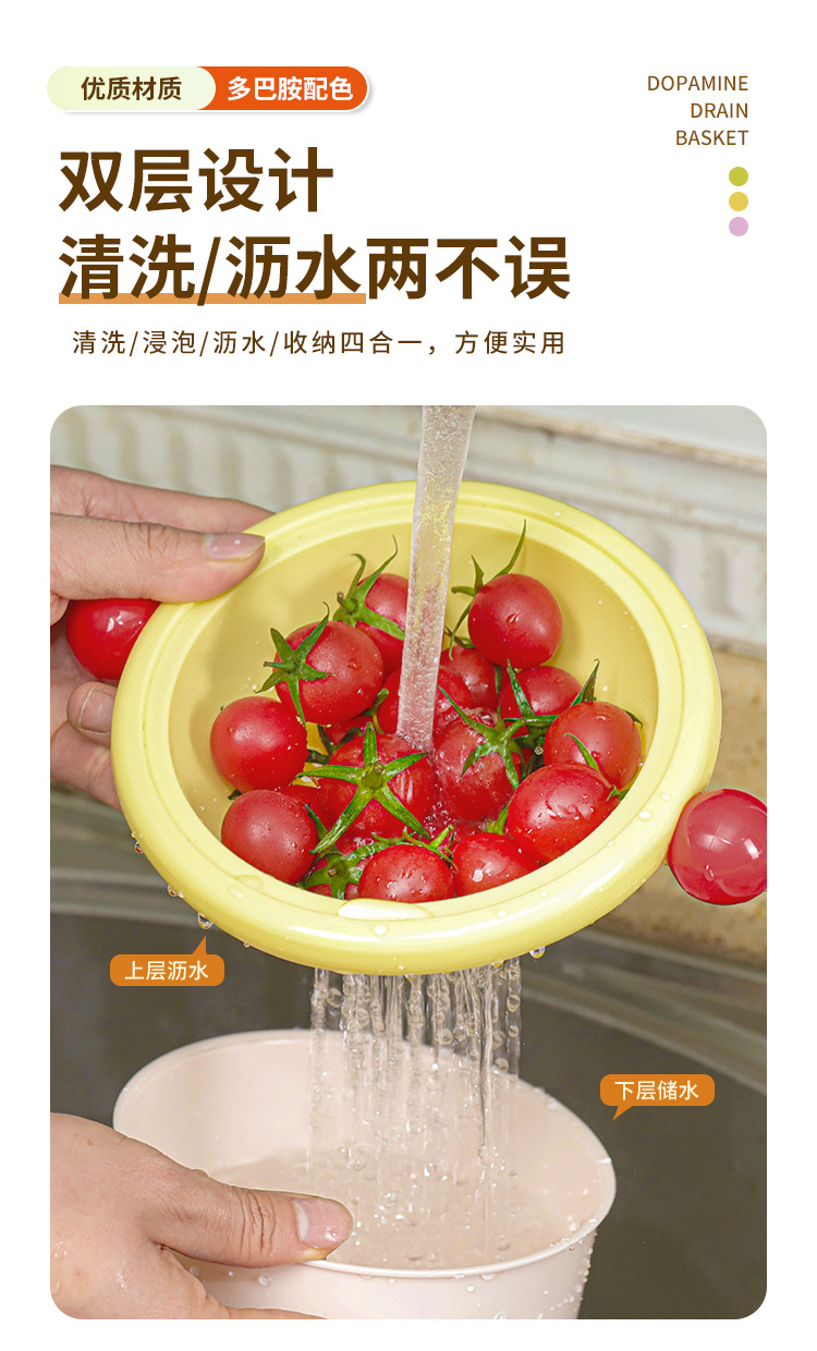 Новая двухслойная допаминовая сливная корзина с высоким значением для домашнего использования фруктов и овощей корзина для очистки 2-1 утолщенная овощная корзина