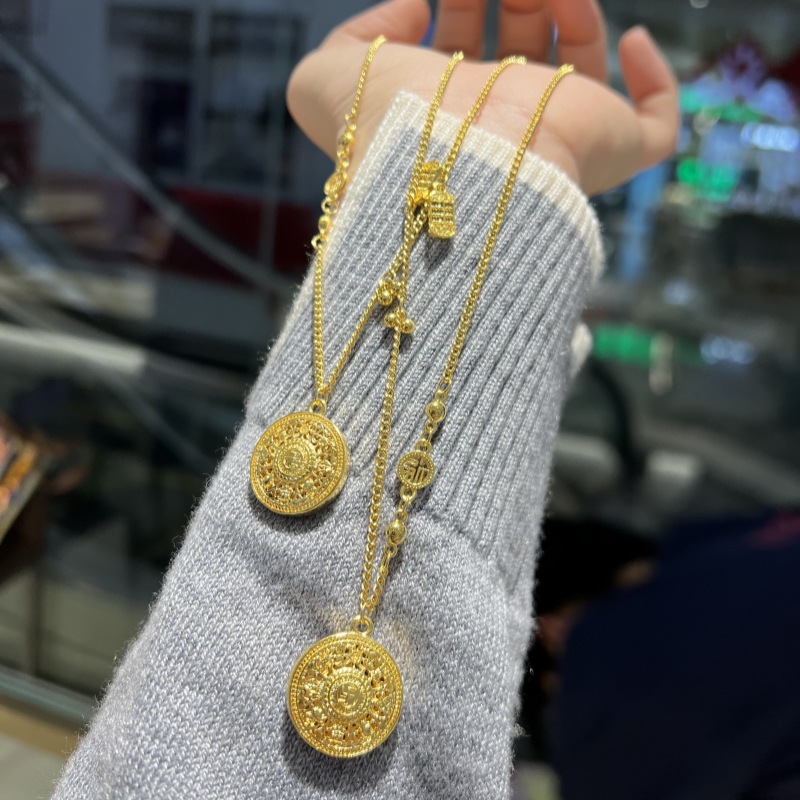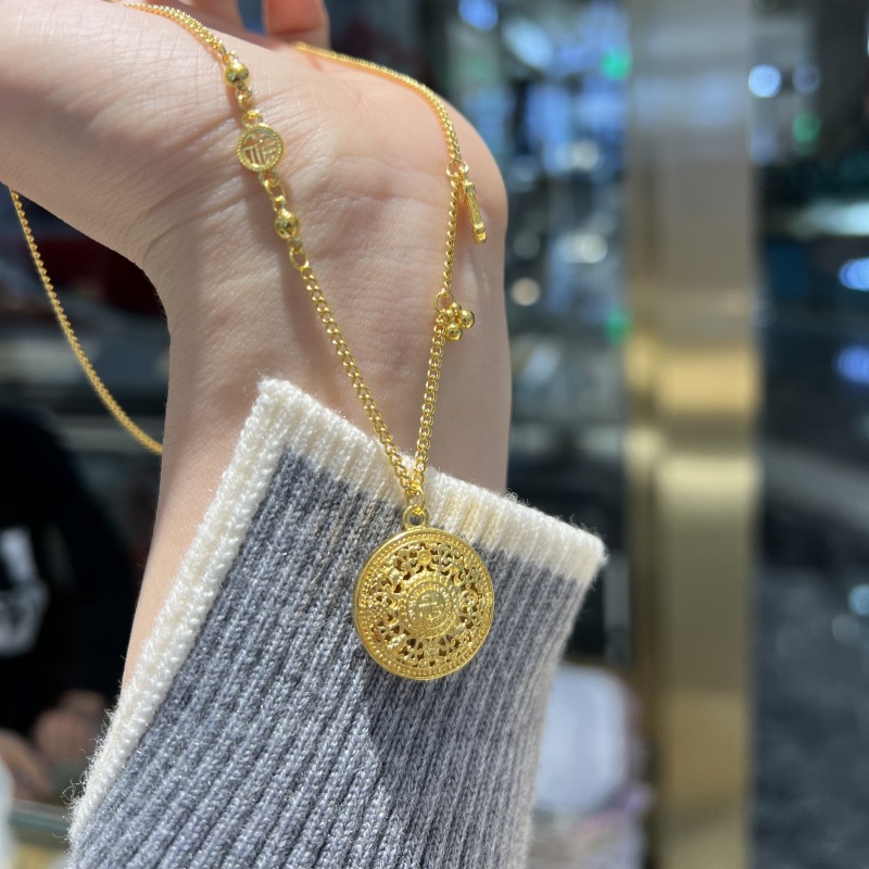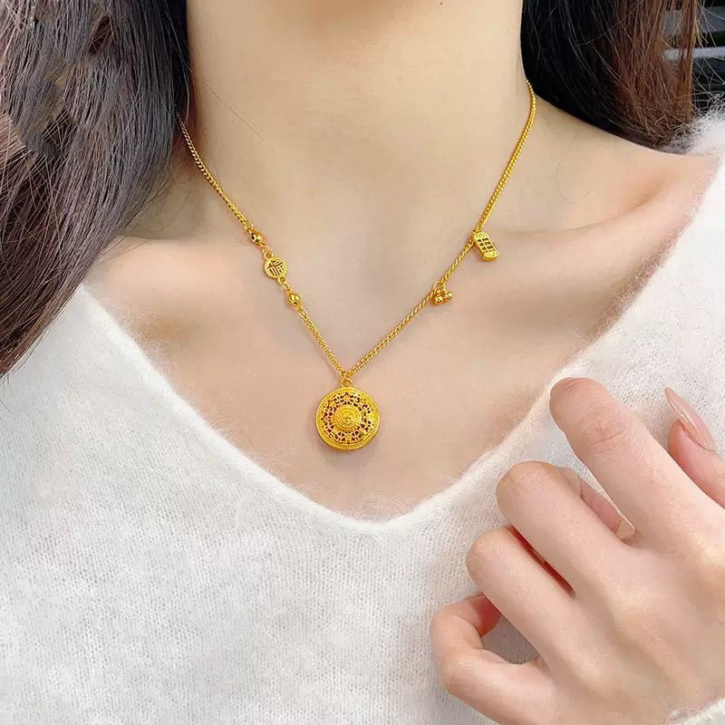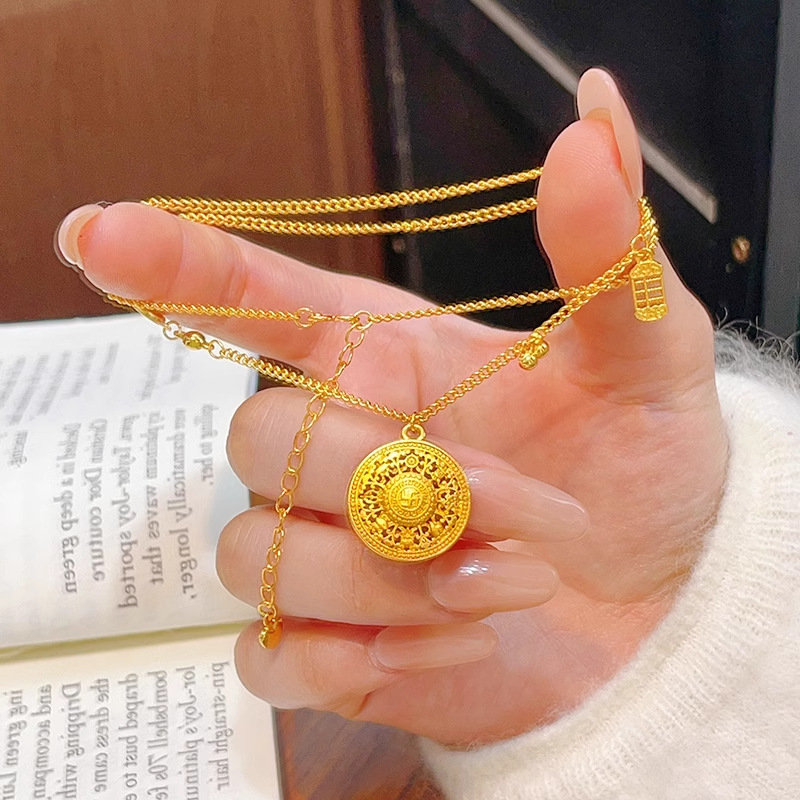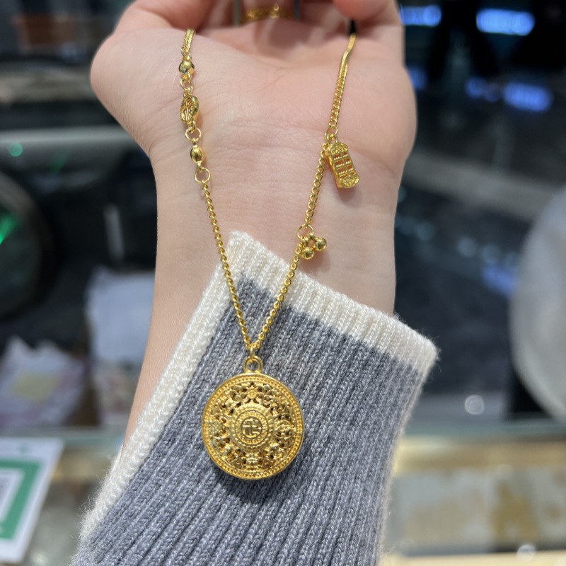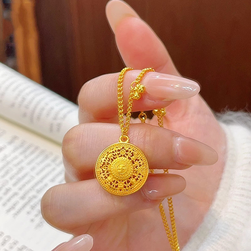 18-каратное золотое восемь сокровищ компас ожерелье Au750 цветной золотой ажурный компас рукав простой легкий роскошный национальный прилив фэн-шуй золото