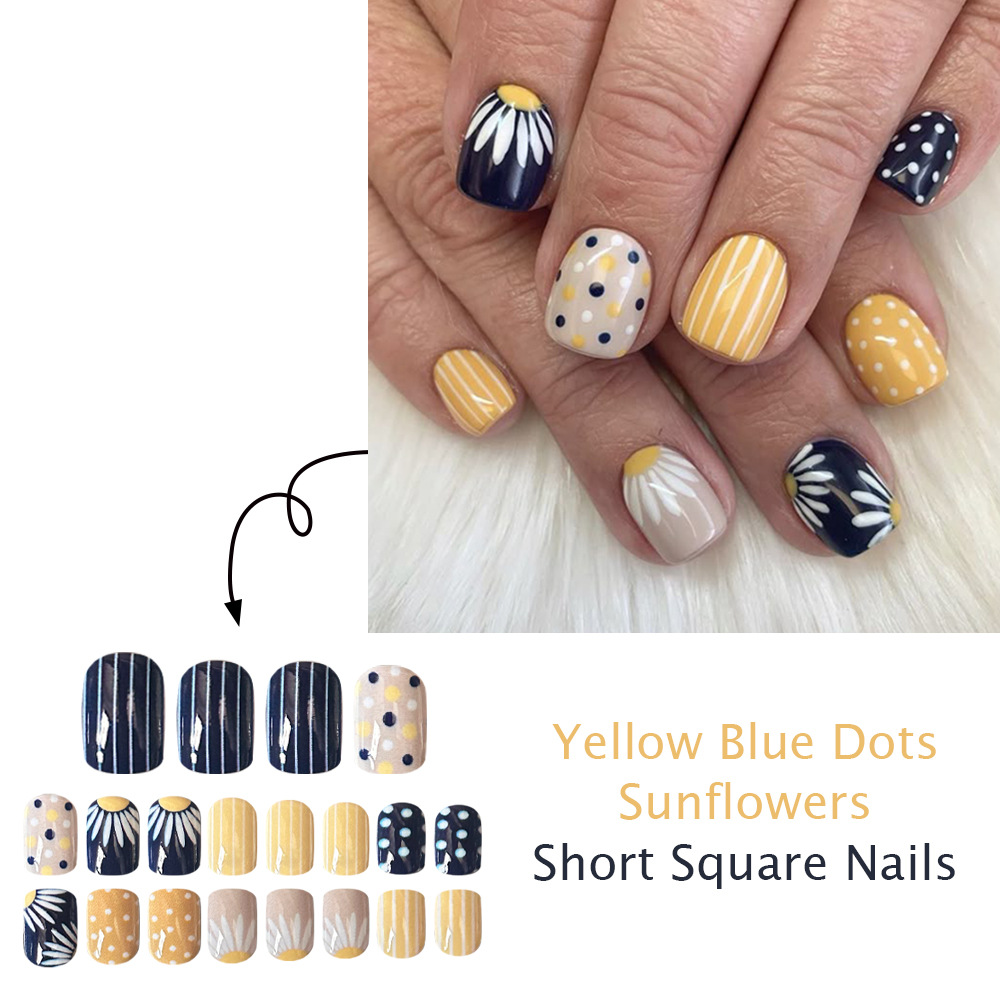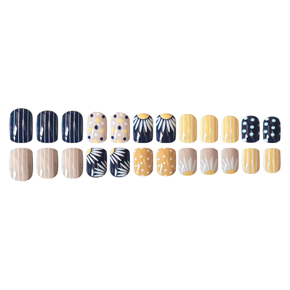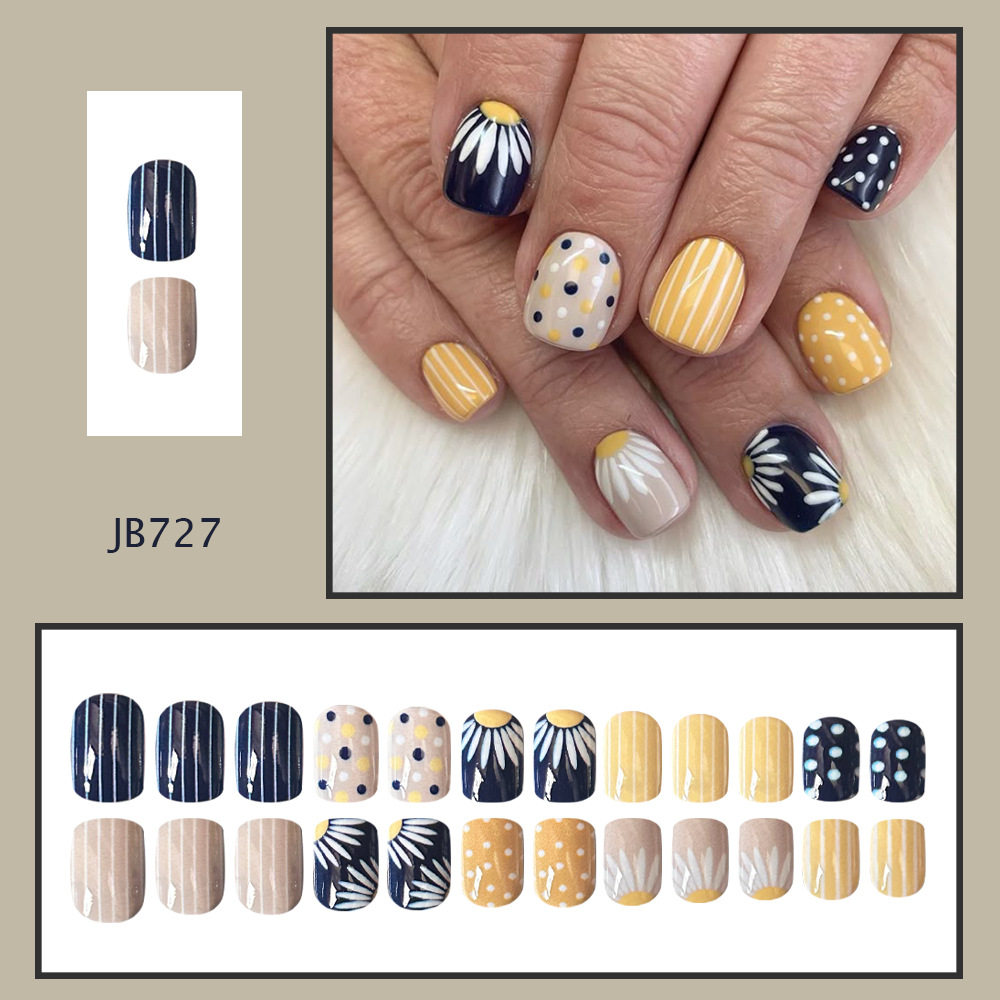 Новые свежие и милые хризантемы с волновой точкой трансграничные короткие квадратные поддельные ногти