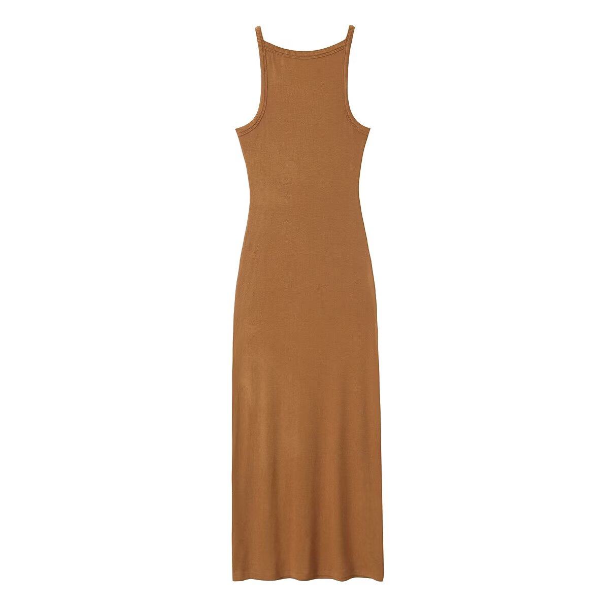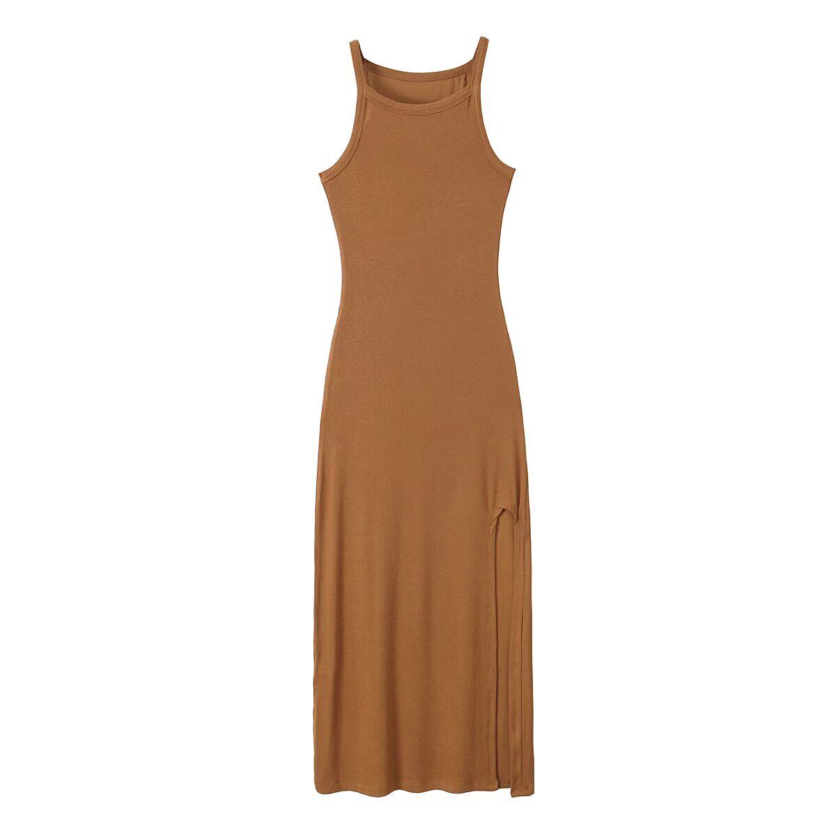 Летнее платье для женщин Amazon 2025 года, европейско-американский стиль, с высокой талией, облегающее, с разрезом на бедре