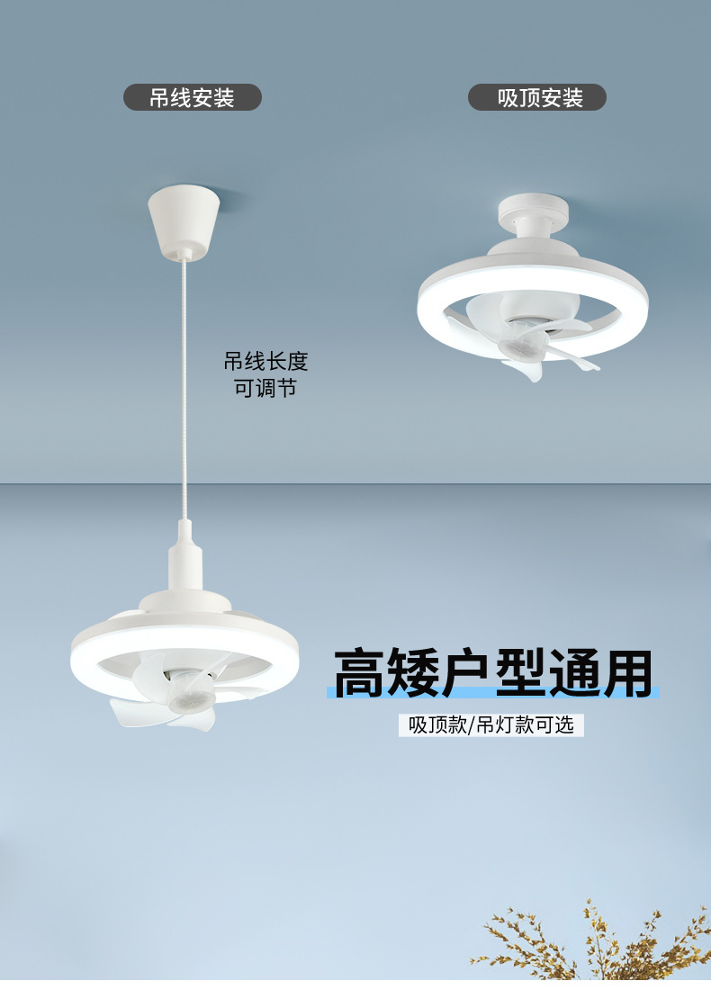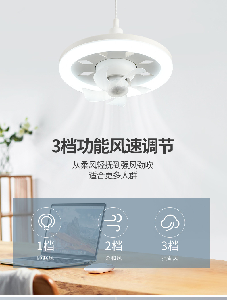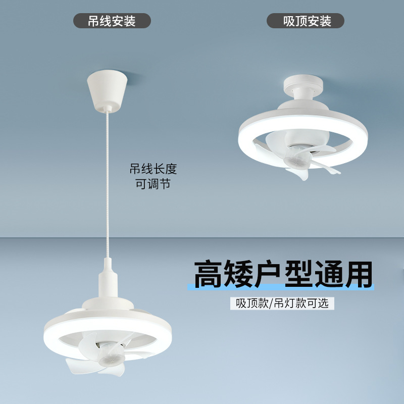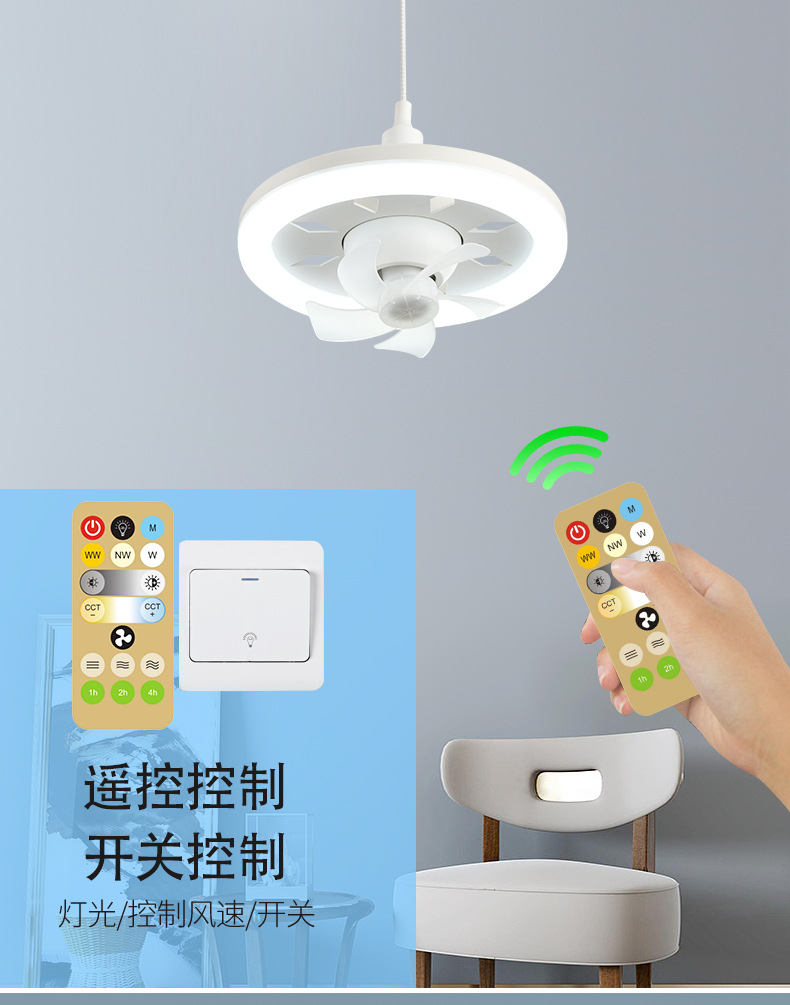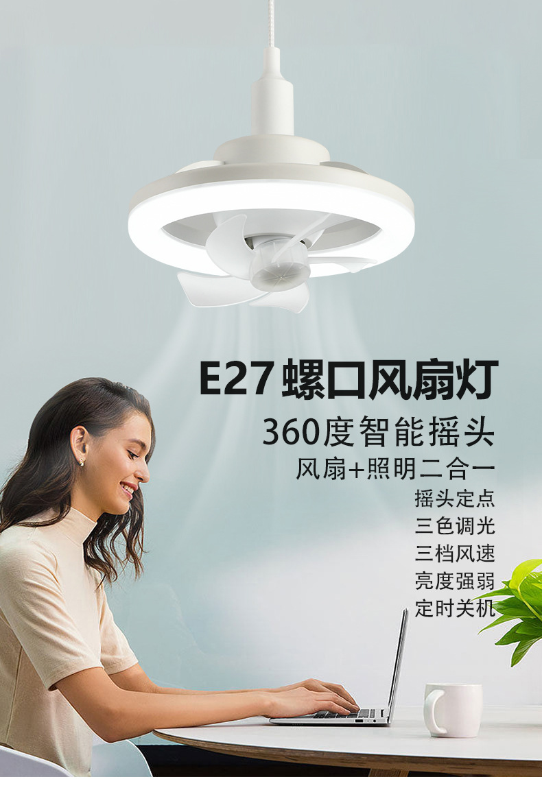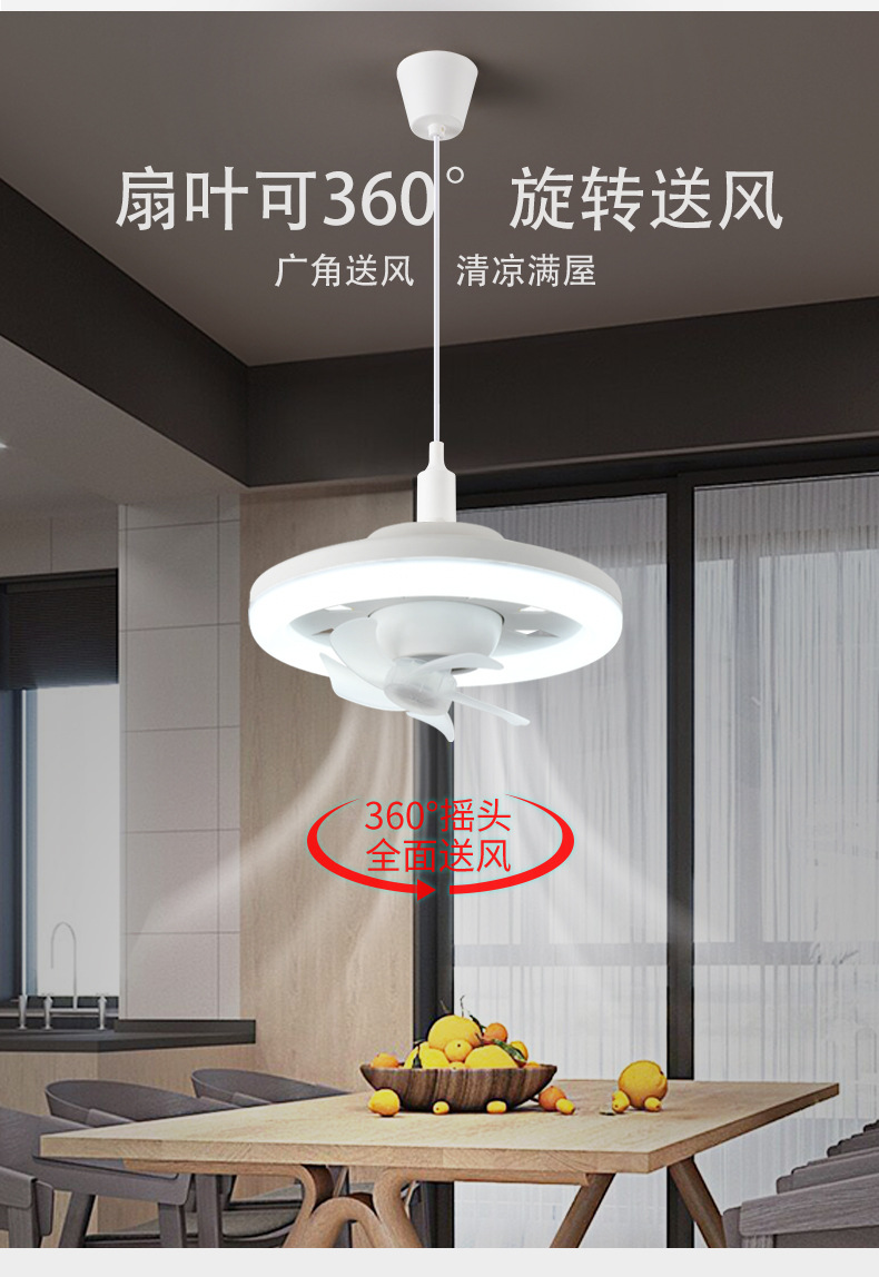 Новая светодиодная лампа с качающейся головкой e27, вентилятор с винтовым креплением, лампа с дистанционным управлением, всасывающий и подвесной, небольшой потолочный вентилятор двойного назначения, люстра для спальни, ресторана