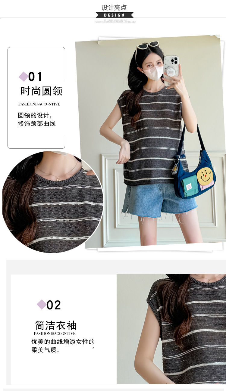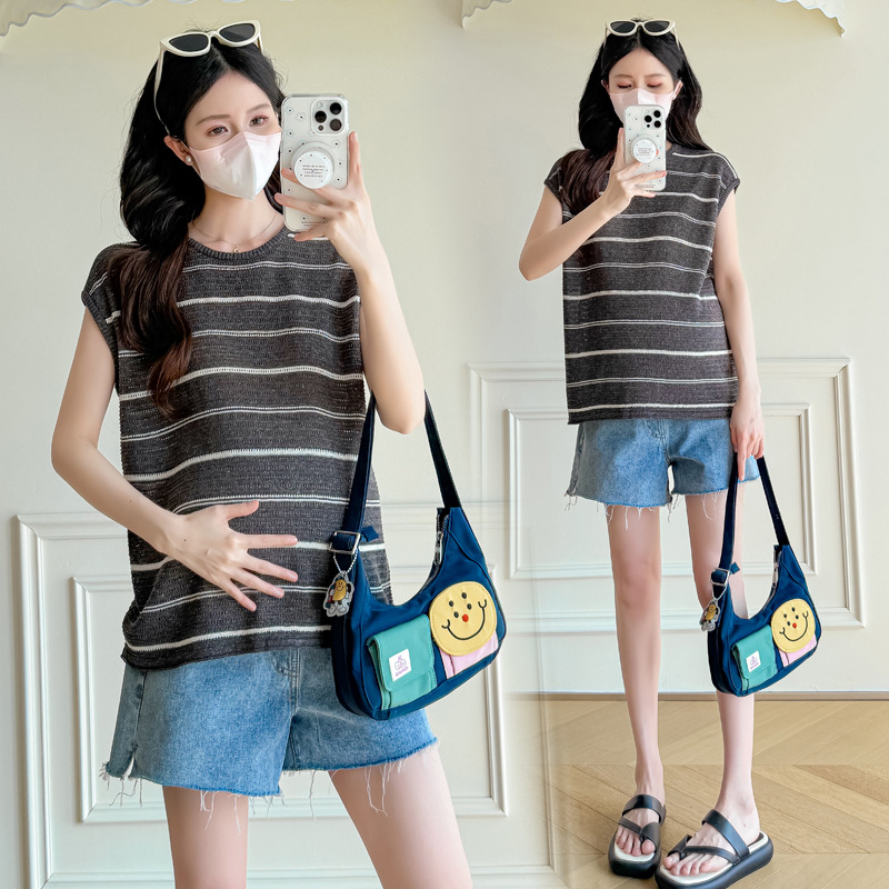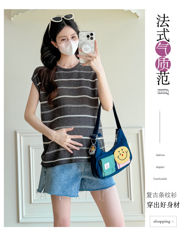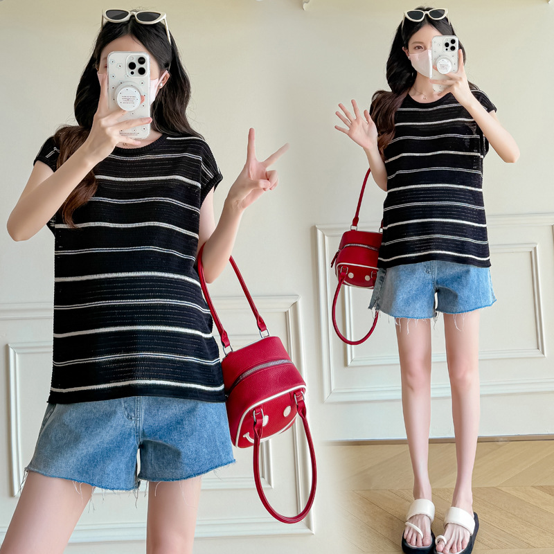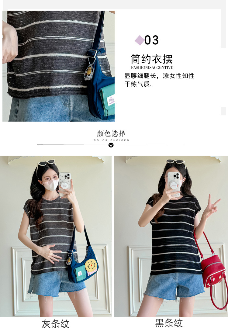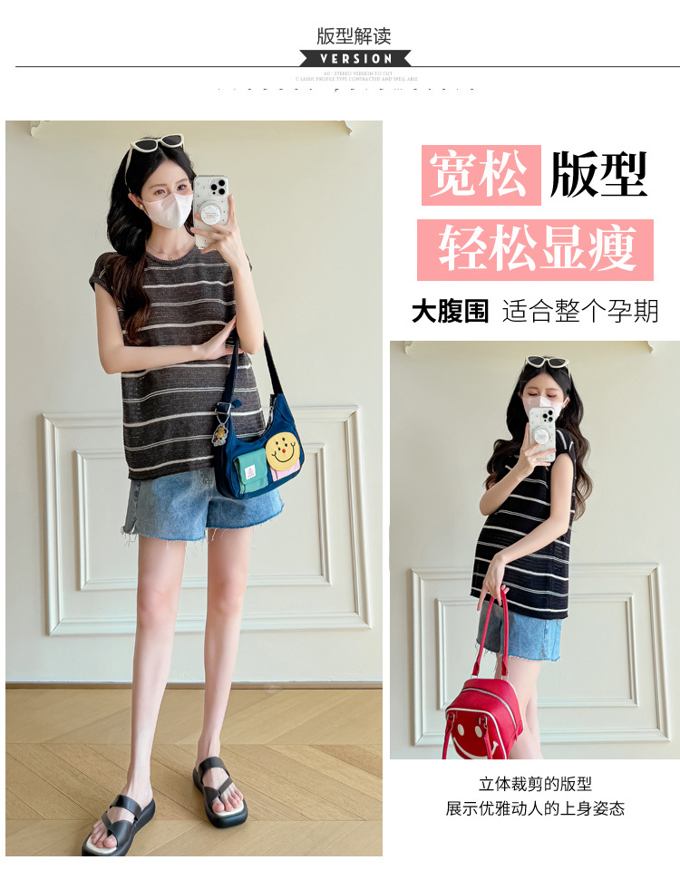 2025 беременная женщина летняя мода темперамент новый ледяной шелк футболка полосатая тонкая дикая удобная беременная топ