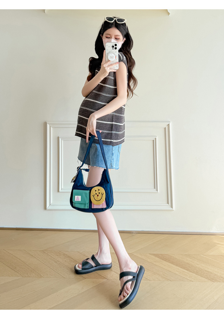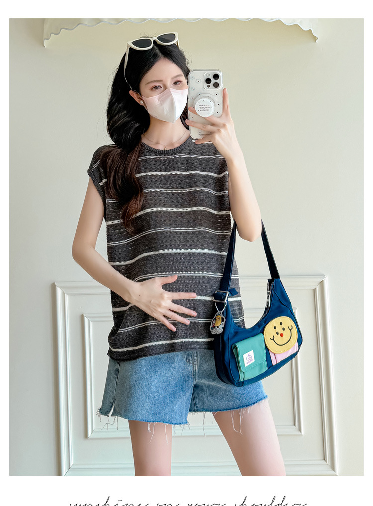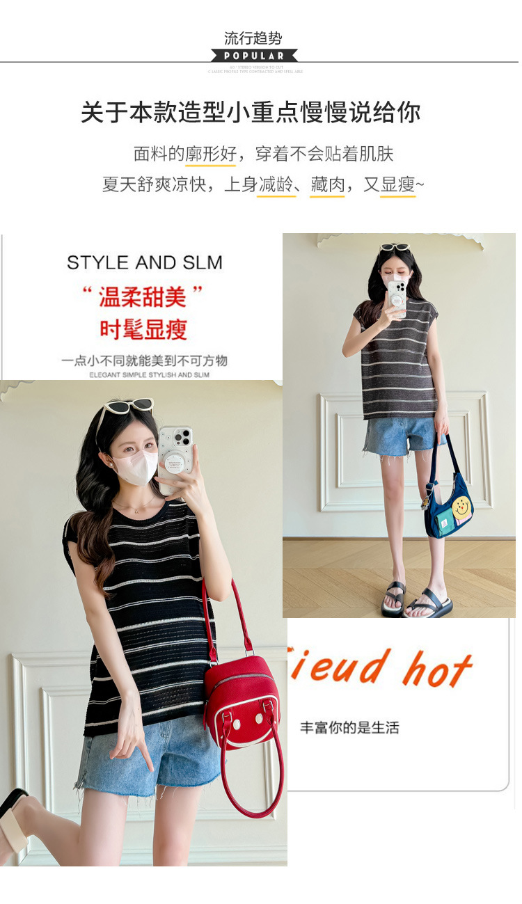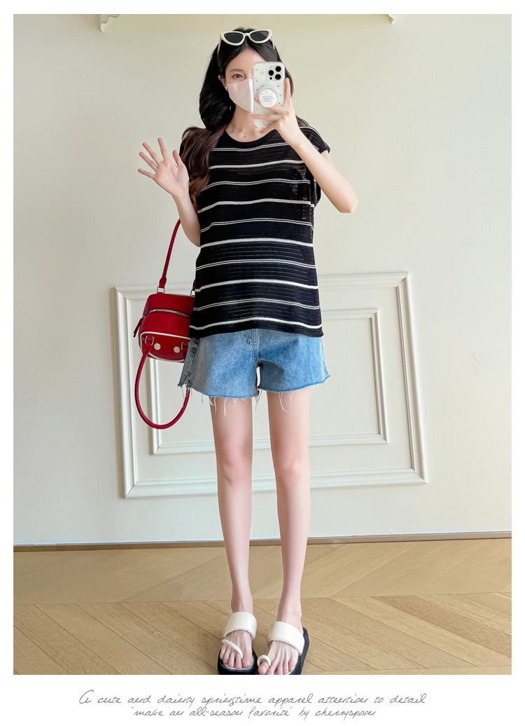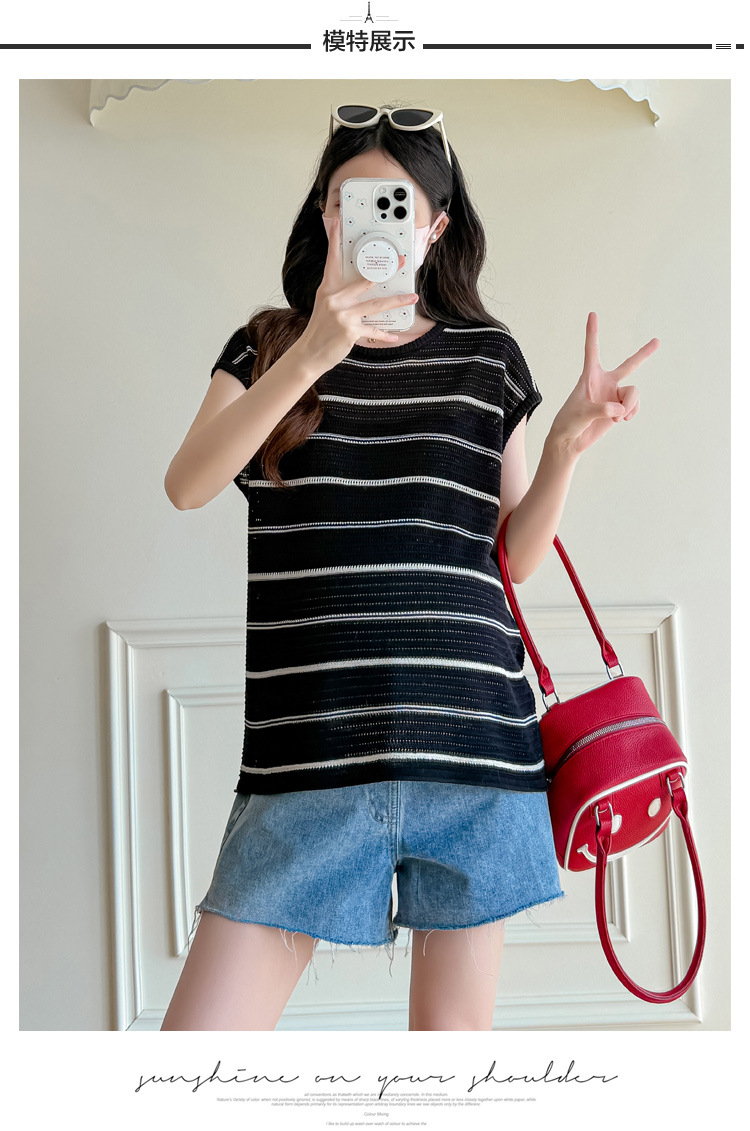 2025 беременная женщина летняя мода темперамент новый ледяной шелк футболка полосатая тонкая дикая удобная беременная топ