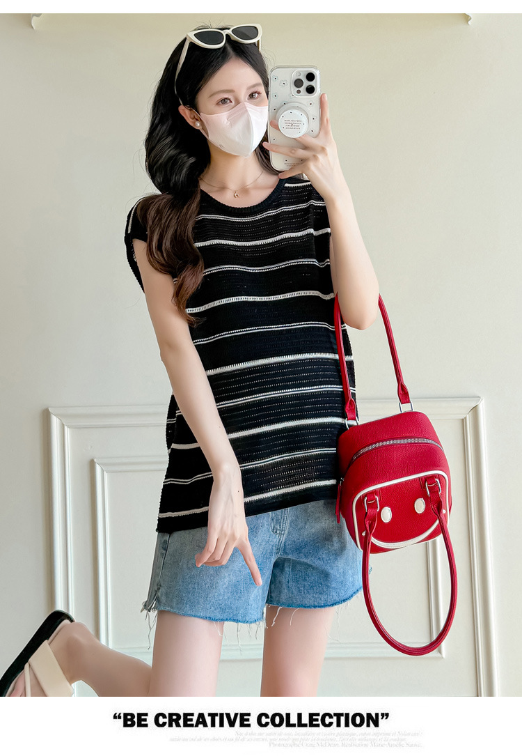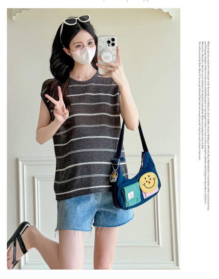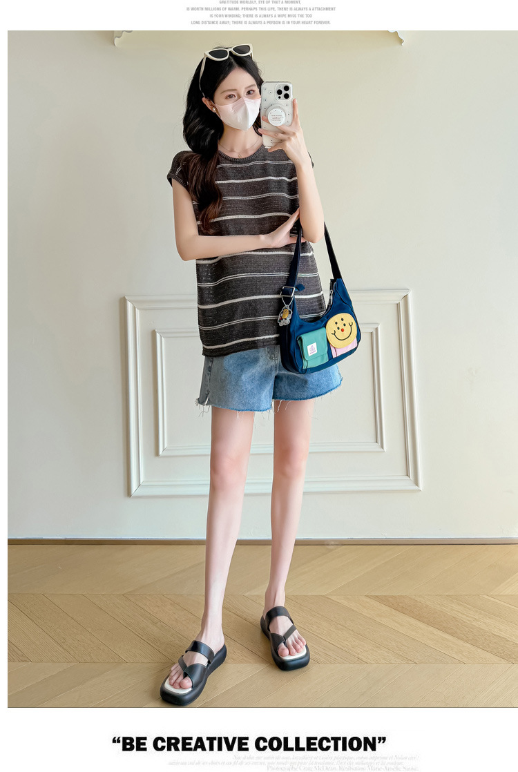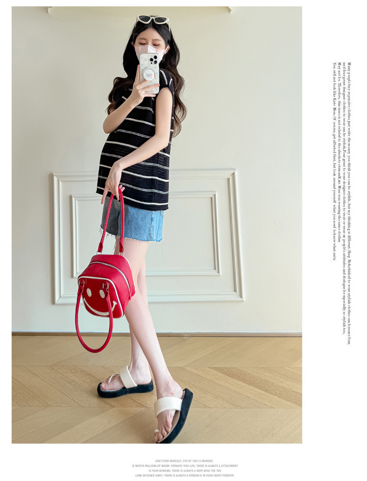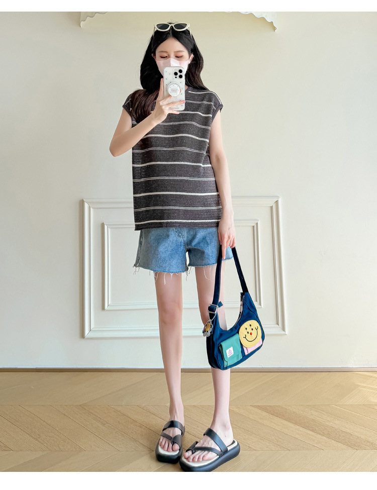 2025 беременная женщина летняя мода темперамент новый ледяной шелк футболка полосатая тонкая дикая удобная беременная топ
