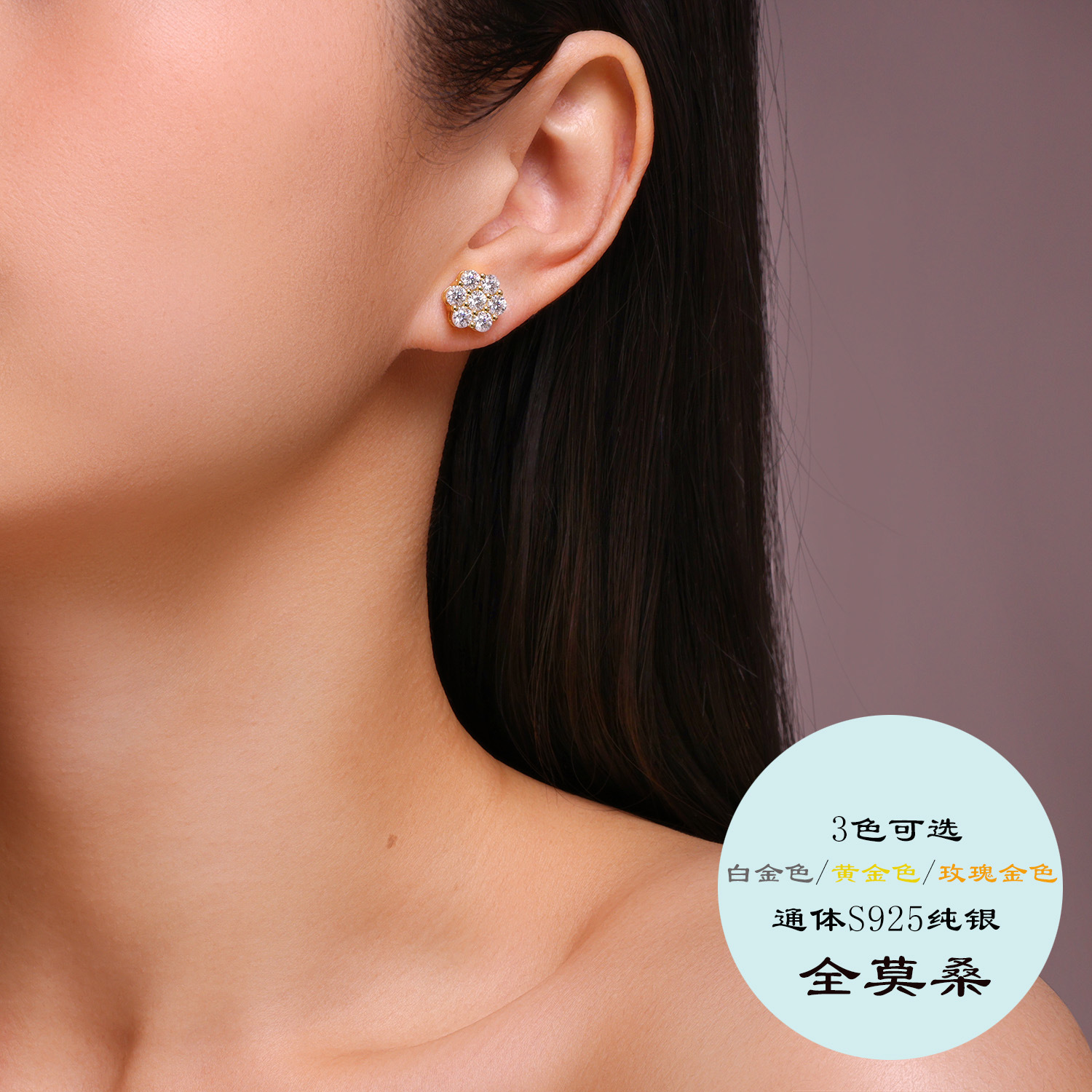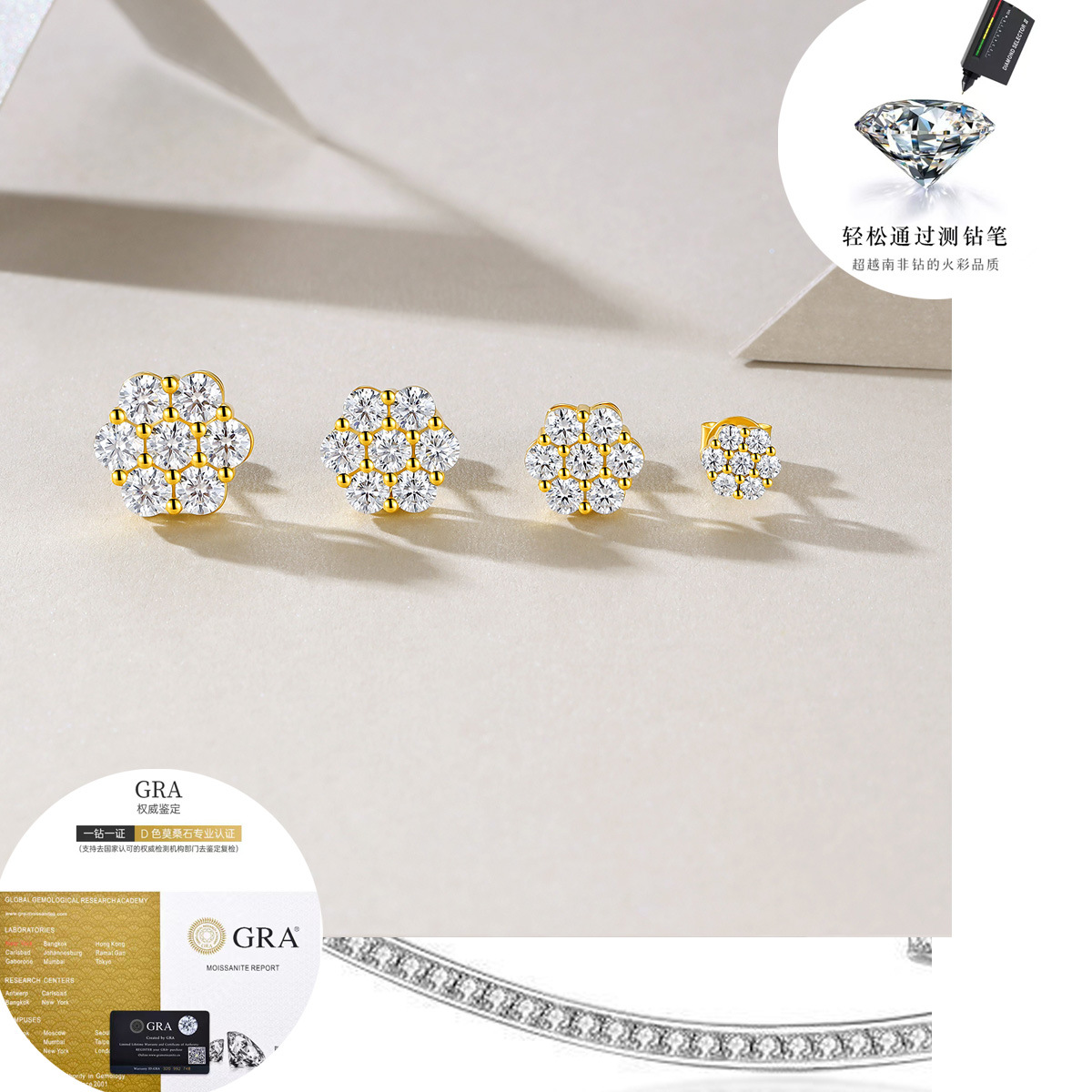 Внешняя торговля S925 посеребренные 18-каратные желтые инкрустированные муассанитовые серьги Amazon в европейском и американском стиле доступны роскошные высококачественные заводские настройки
