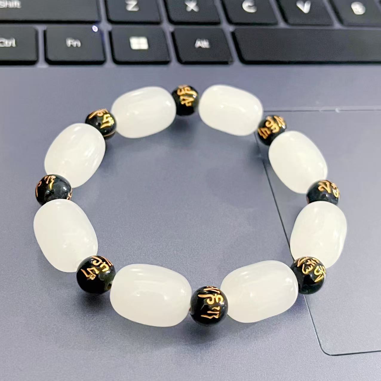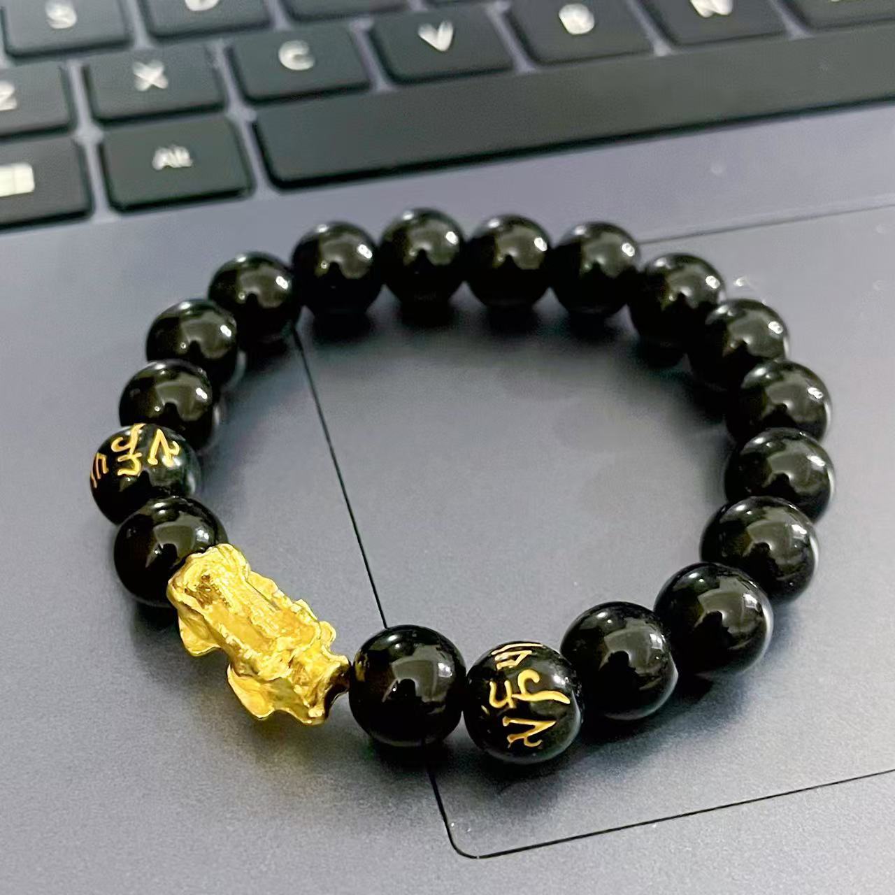 Браслет Пиксиу с имитацией обсидиана, шестисложная мантра Пиксиу, белый нефрит, уличный ларек, нефритовый браслет, модель для прямой трансляции, производитель Иу