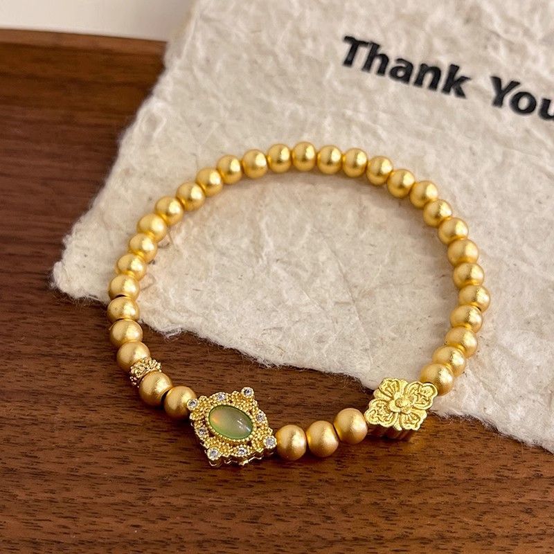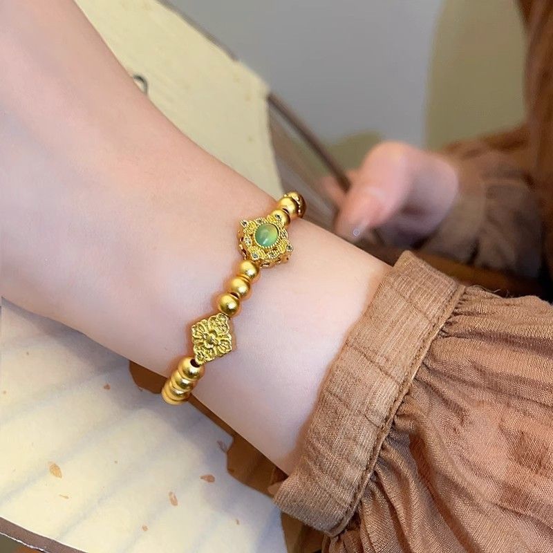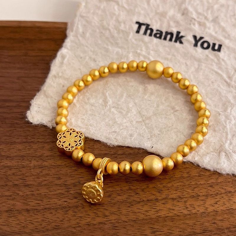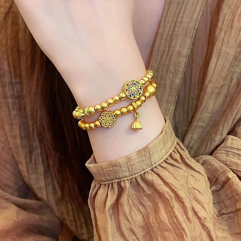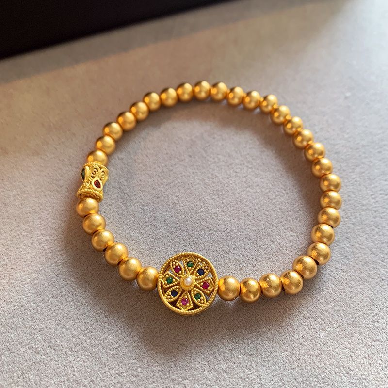 Аутентичный долговечный древний браслет из песочного золота с бусинами для женщин, нишевый универсальный дизайн золотого цвета для женщин